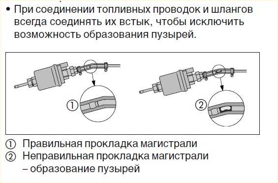 а. насос подкачки должен быть установлен ниже помпы мотора.