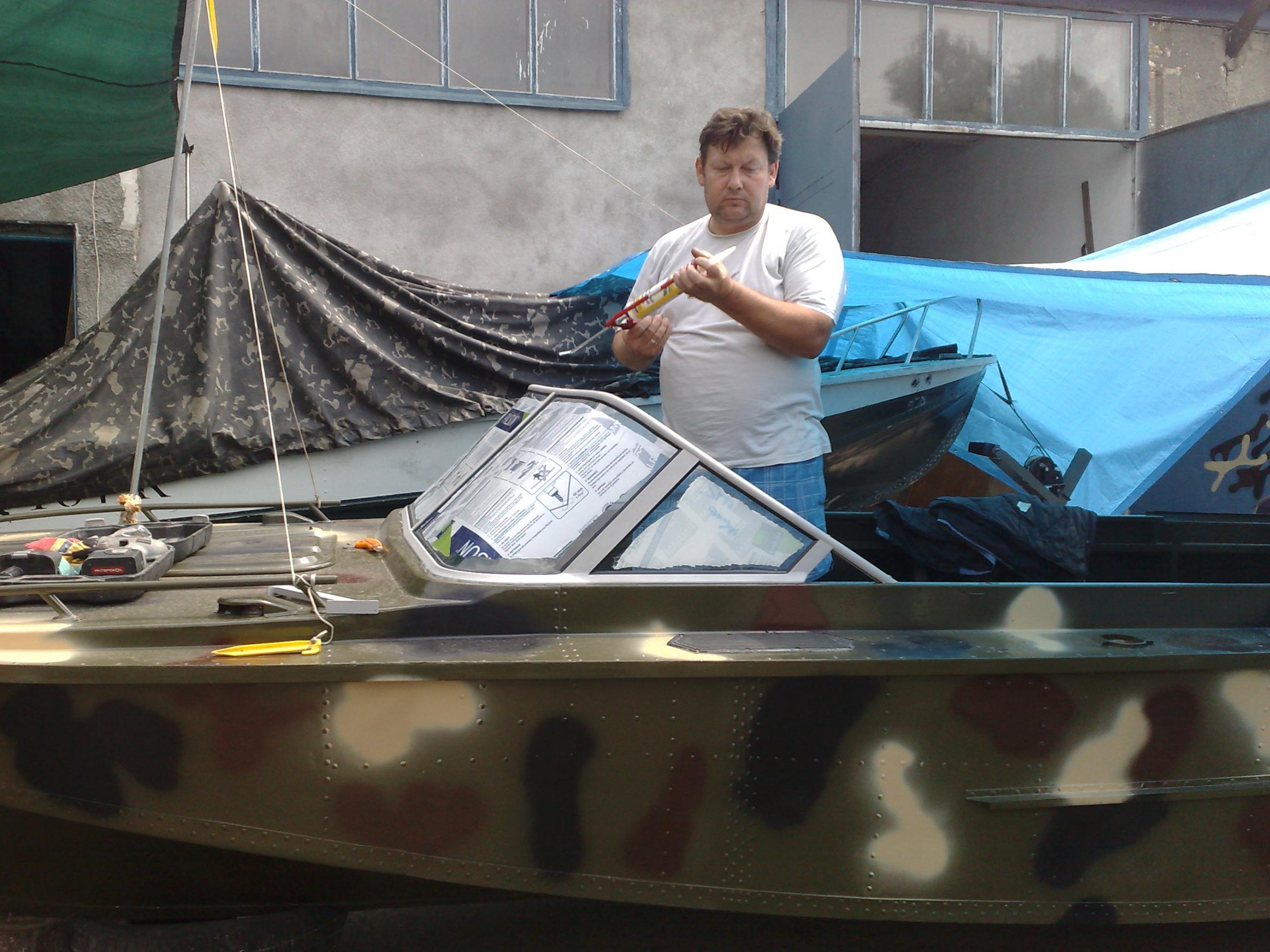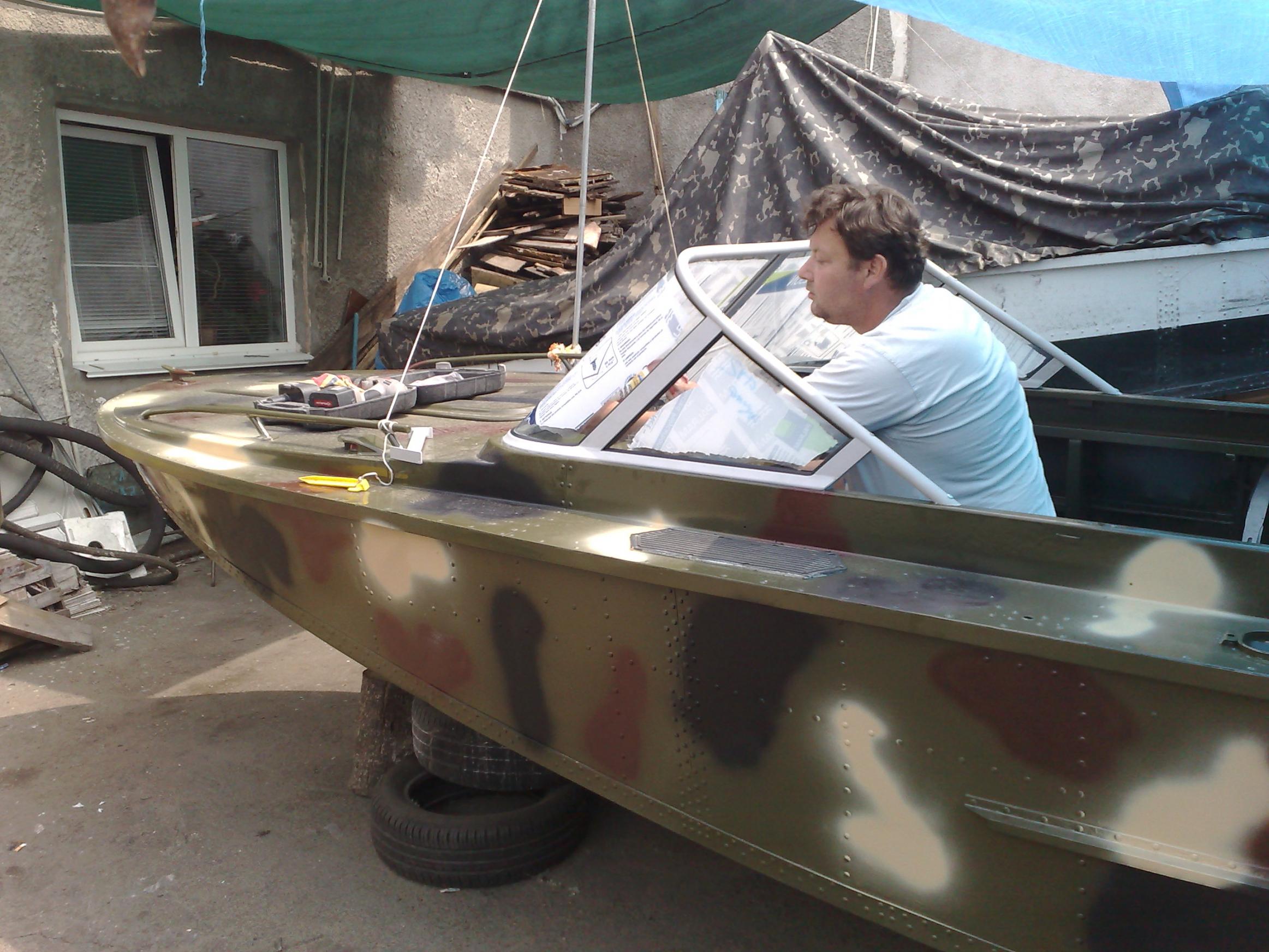 Правда, о нем уже было упоминание в 145 посту, но я постараюсь более упорядочено, с начала. Естественно первое, что предстояло сделать - освободить корпус от всего, всего и даже всех слоев краски. Вследствие чего обнаружены корозионные язвы вычищены локализованы, но самое проблематичное - было отремонтировать полностью сгнивший стальной форштевень. После недолгих консультаций с нашими уважаемыми Амуроводами (Сэром и Бондыком) заварили прутом-катанкой от верхней части носа катера и до 1/3 его длинны (2,2м), швом-точками с постоянным охлаждением. Проверено керосином и мелом, обработано изнутри многократно густым мовилем - воду держит. Гут. Потом естественно обезжиривание, троекратное грунтование и покраска, камуфлирование, как и хотел наш амуровод Саня STP. Эти стадии в фото отсутствуют, так как самому пришлось вспомнить молодость и тряхнуть сединой. (Материаллы те же: грунт ВЛ-02, Грунт "Du Point", Краска ЭП-140). После просушки пришел на помощь наш Влад, который примерял и изготовил рамку и стекло лобовое - на фото сам автор. Продолжение следует. |