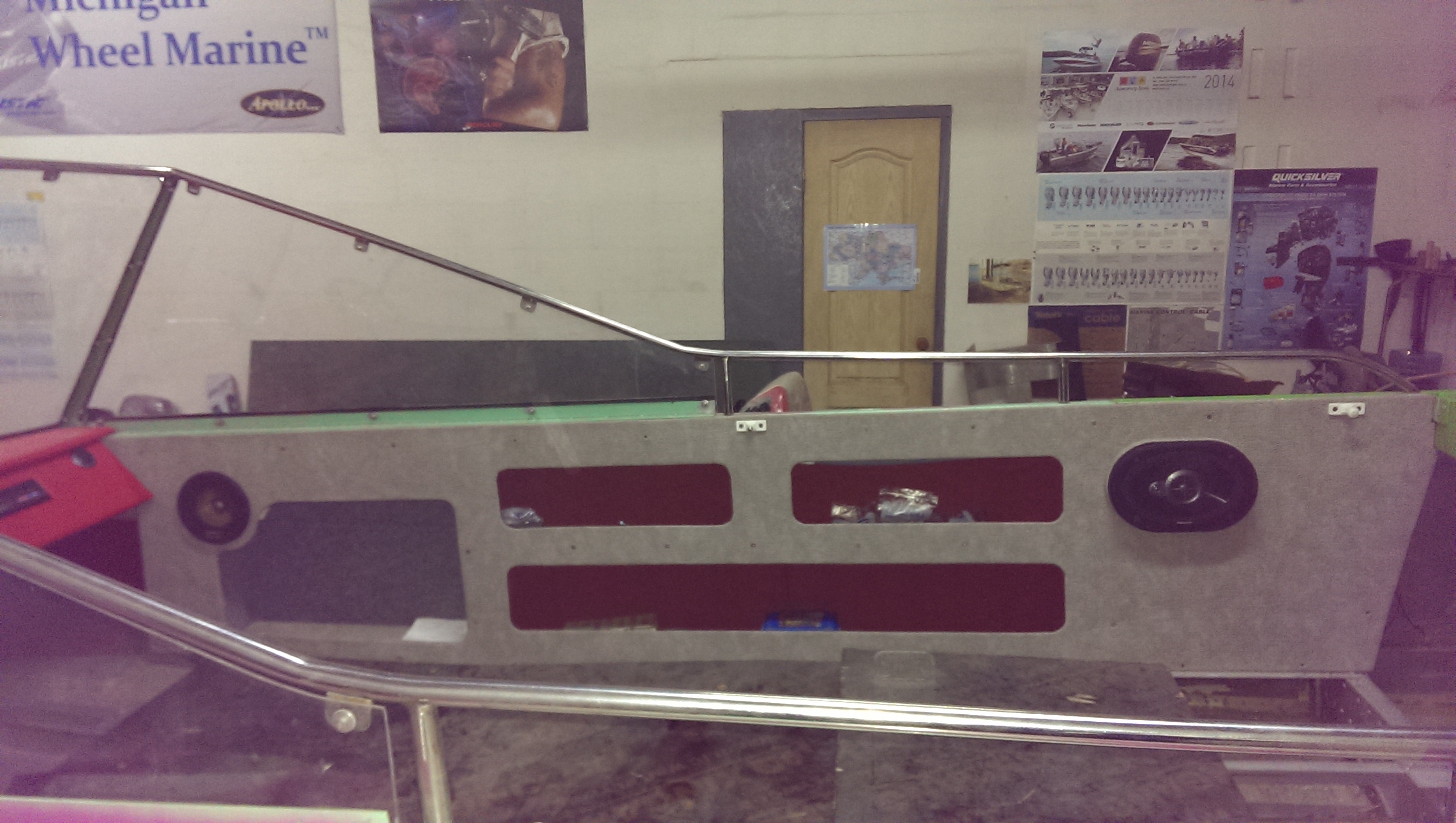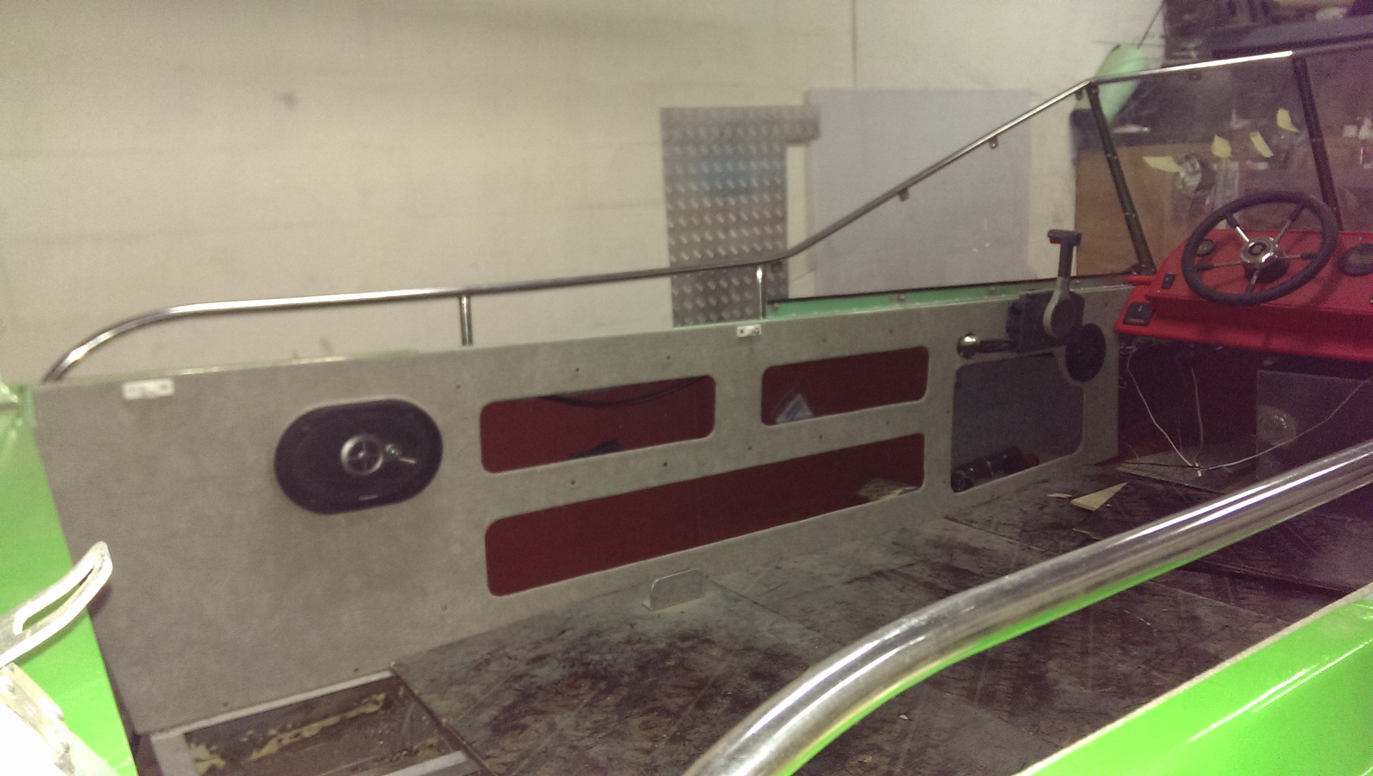 Еще несколько фото... В бортах, где стояли родные баки, вышли очень вместительные карманы. Так как сиденья автомобильные, и чтобы они раскручивались на 180 градусов, пришлось сделать ниши в бортах.