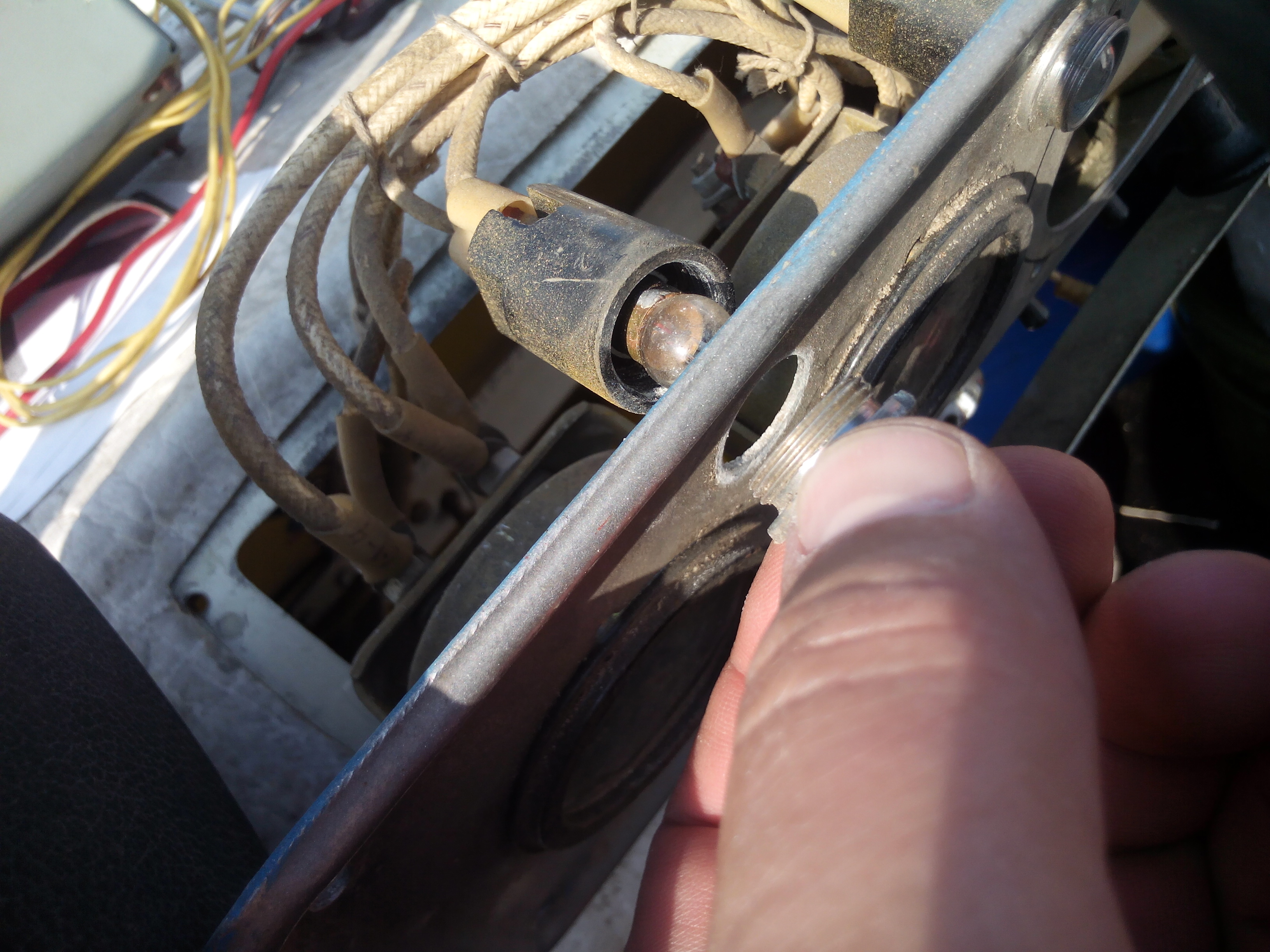 Есть желание переделать приборную панель заменив штатные приборы на "шестерочные". Предполагается приборную пластину оставить штатную, а новые приборы поставить через шайбы, чтобы не проваливались. Когда все будет подогнано и вырезано отверстие для тахометра, проверится работа -перекрашу приборную пластину и всё соберу. Есть вопрос. Как откручиваются патроны подсветки приборов?