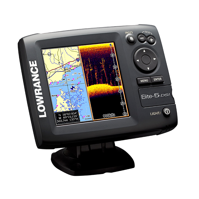 Новый цветной эхолот-навигатор Lowrance Elite-5 DSI – это отлично зарекомендовавший себя Elite-5 с датчиком нижнего сканирования (DownScan Imaging™).