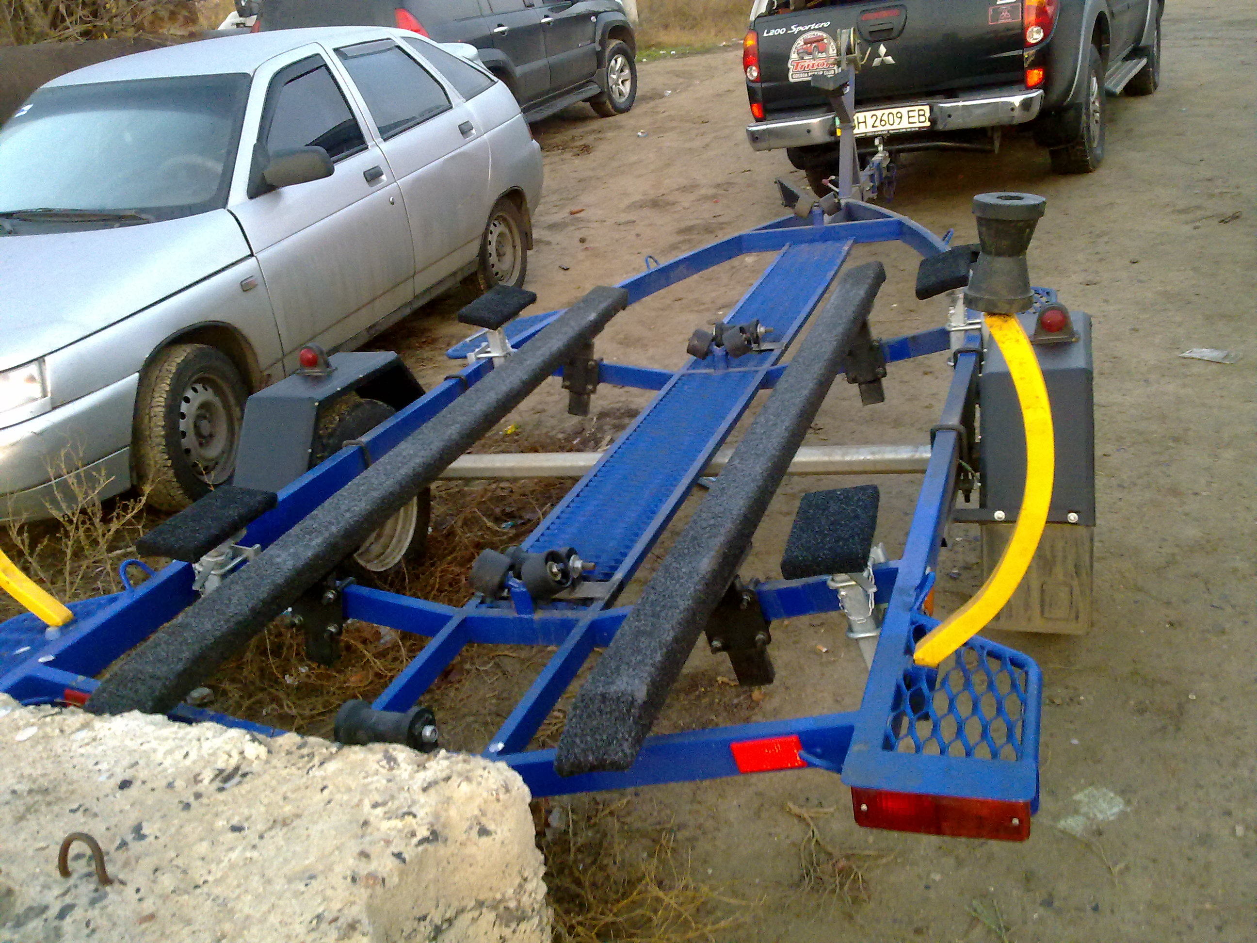 Лафет "Кияшко" лодки до 5 метров.Порошковая краска, складное дышло, запаска, торсионы "АЛКО"-750кгс возможностью передвижения по раме, лебедка "АЛКО-500кг, кормовой домкрат с V-образным роликом или горизонтальным. Дополнительно 4шт домкрата по бортам. http://www.youtube.com/watch?v=XgO2VDXUr48 Востаннє редагував stp: 17.05.2015 о 20:44. |