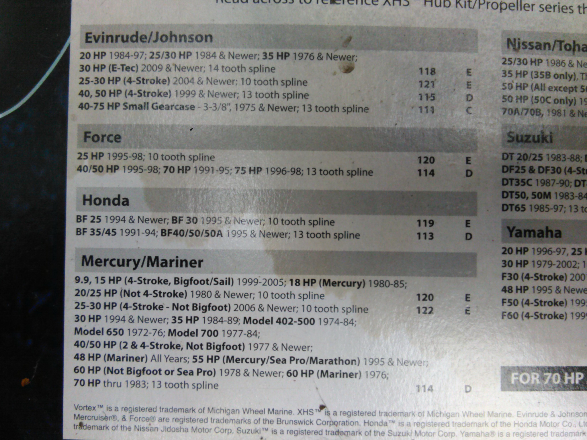 - моторы Mercury / Mariner 40 ‑ 60 (2-тактные и 4-тактные не BigFoot, 1977 г. и новее);