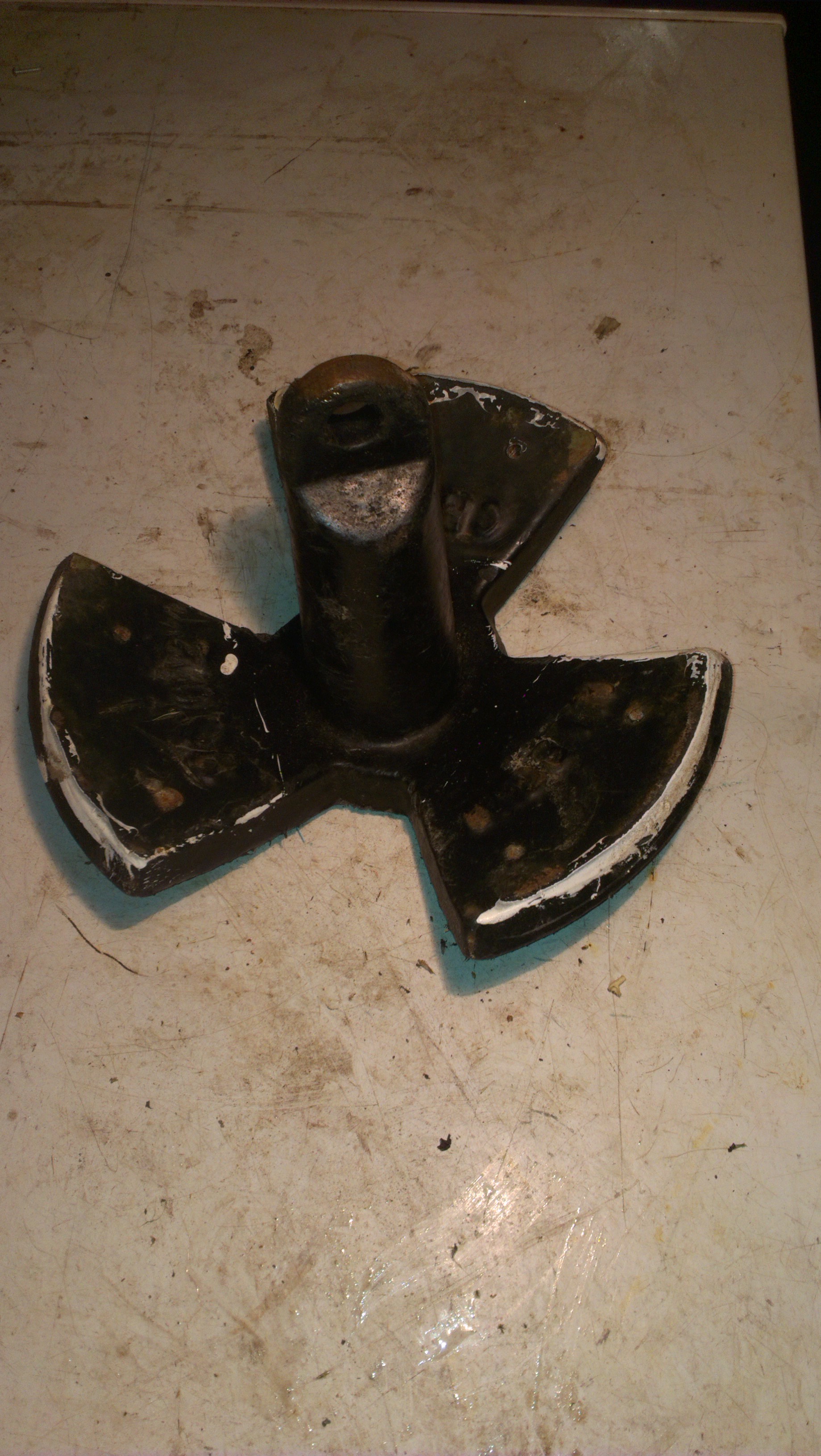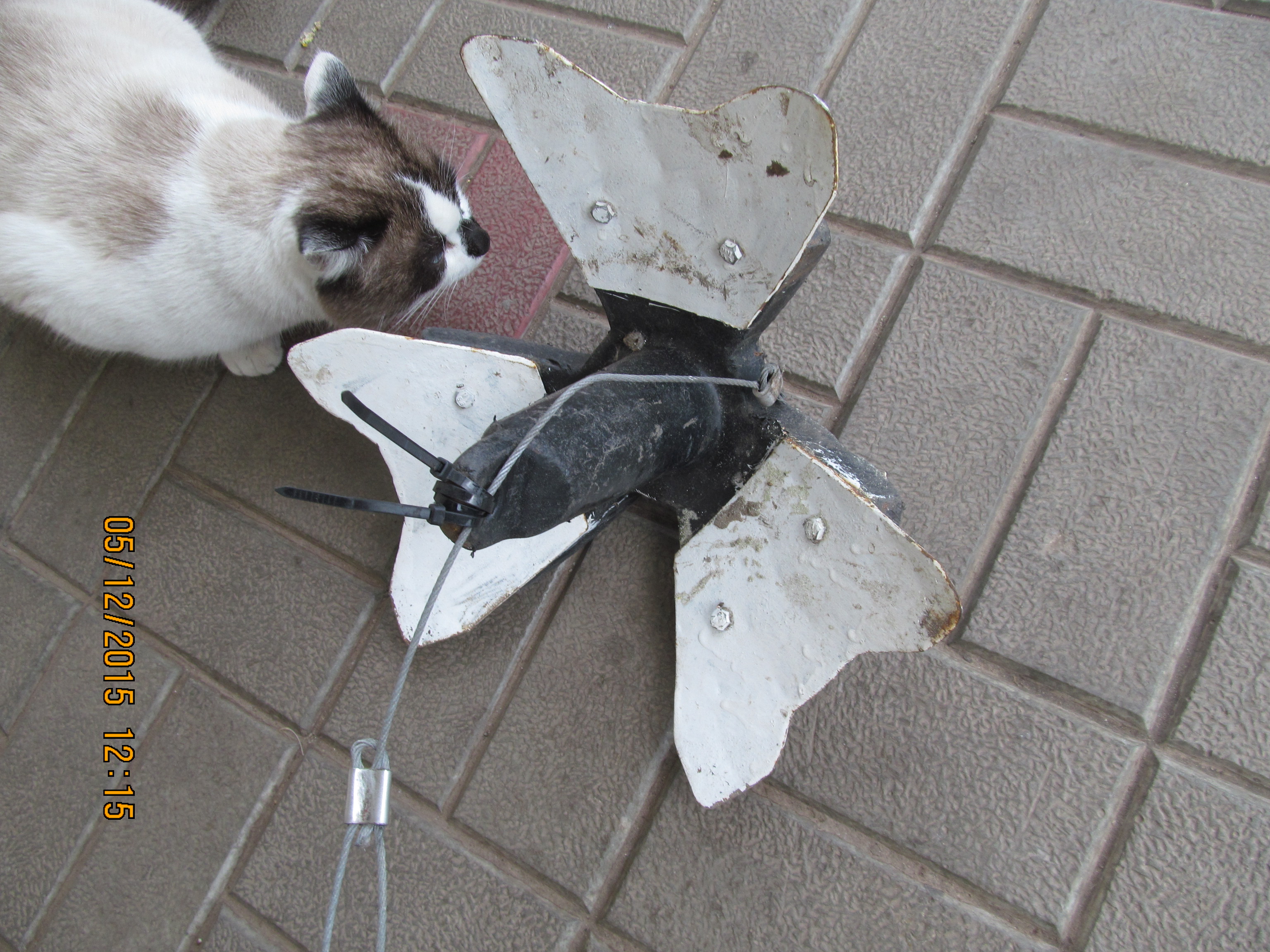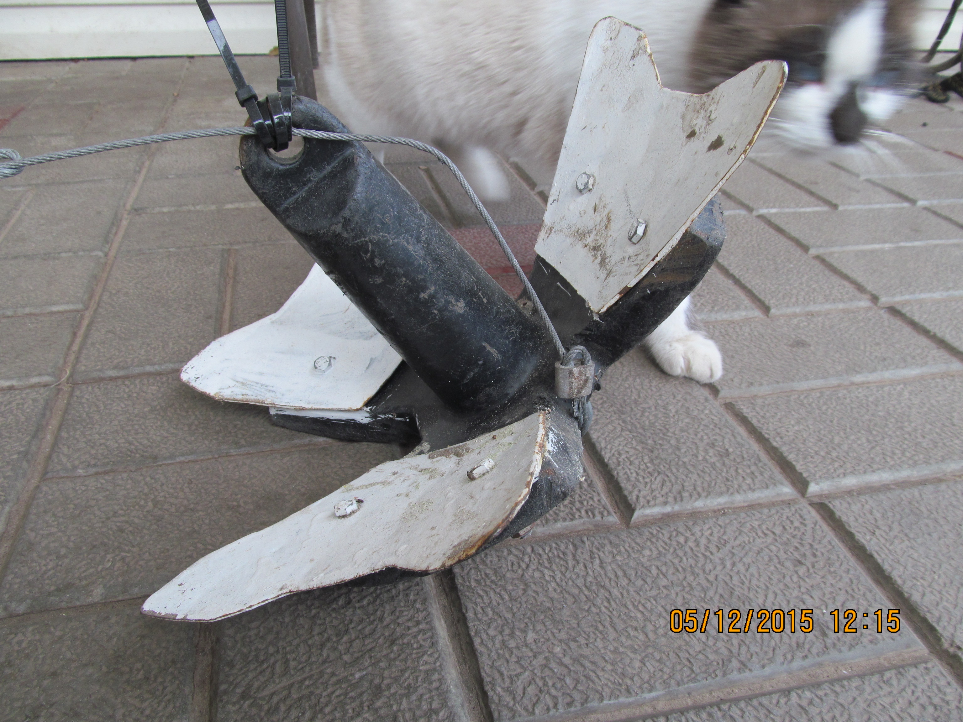 3."Модернизированный" якорь речной "Ромашка". Лопасти съемные. На кантере 10 кг. Есть подертости резинового покрытия. Страховочный тросик в комплекте (без кота