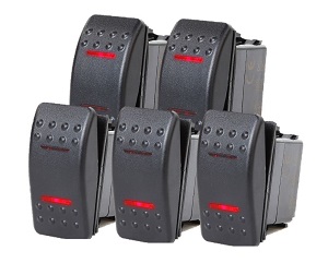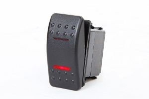Клавишный выключатель MARINA R является водонепроницаемым по классу защиты IP 56. Устанавливается в прямоугольное отверстие 21.2 х 37.2 мм. Имеет 2 ярко красных светодиодных индикатора. Допустимая нагрузка 20 А при 12 В, и 10 А при 24 В. Имеет широкий спектр применения, как на водных видах транспорта, так и на наземных.