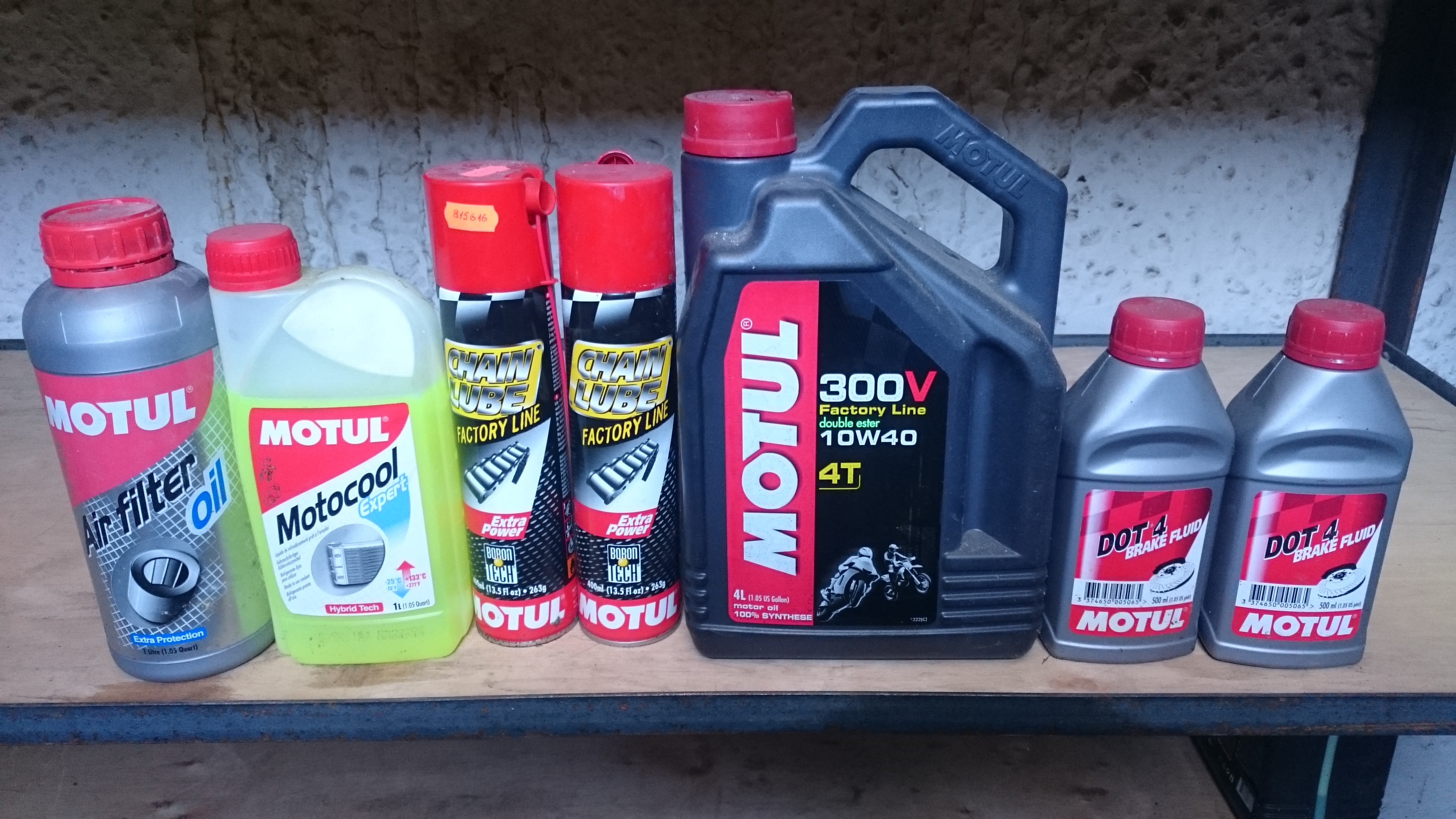 масло MOTUL 300V 4 литра Motul air filter oil - открытая грам 50 нету там Motul motocool expert - открытая видно по фото сколько нету Motul chain lube factory line - смазка цепи одна не распечатанная, вторая наполовину. Motul dot 4 - 2 шт. не распечатанные. за все 2500 грн Извините, о675зо46ч2 Востаннє редагував Гена: 16.04.2016 о 23:25. |