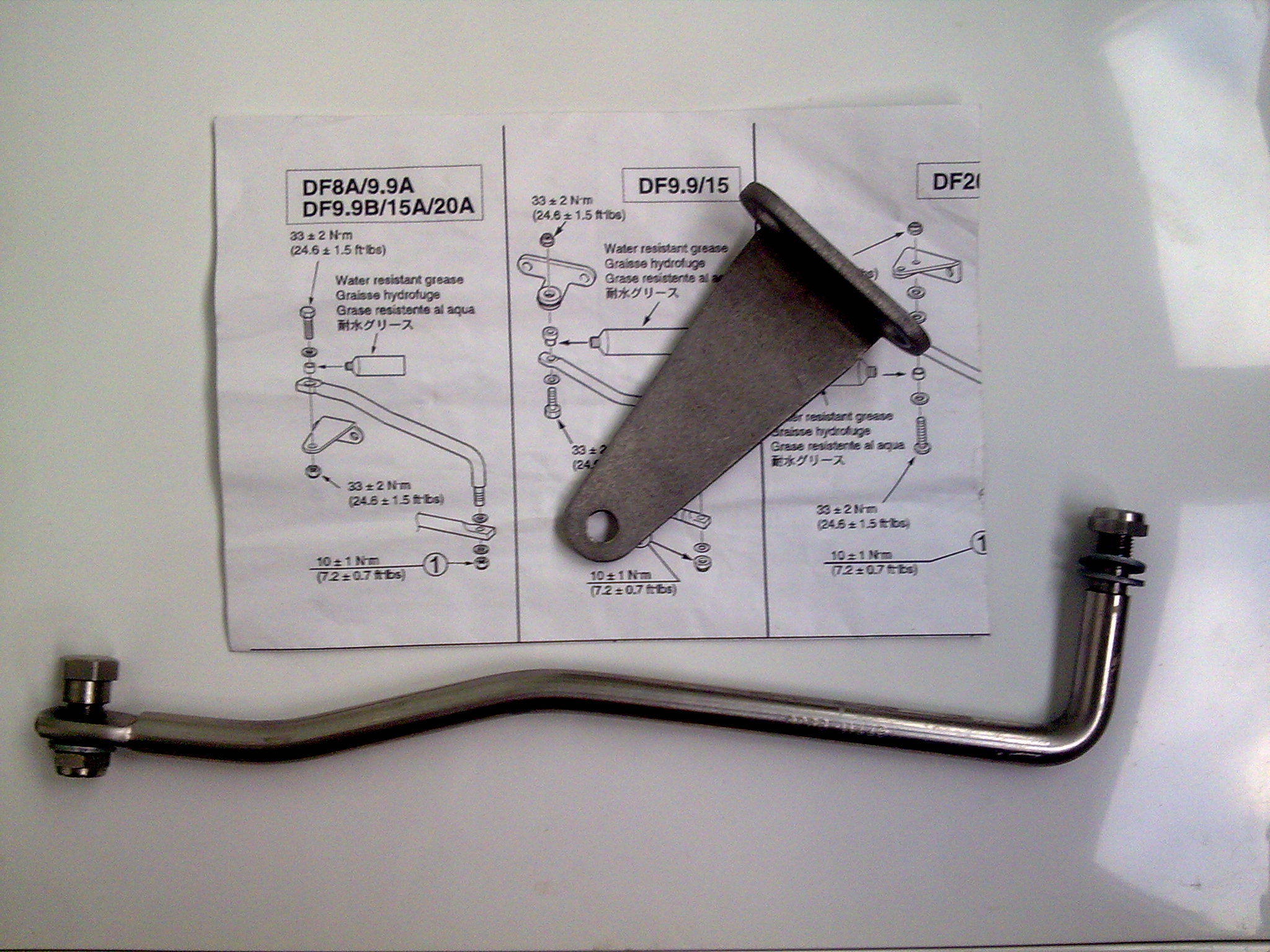 В наличии комплект деталей для установки на моторы Suzuki DF15A/DF20A. Позволяет переделать мотор с румпельного управления на дистанционное. Комплект 1 содержит все необходимые детали для подключения тросов газ/реверс. Комплект 2 - подключение мотора к тросу управления через рулевую тягу. Все детали оригинальные, по каталогу Suzuki.