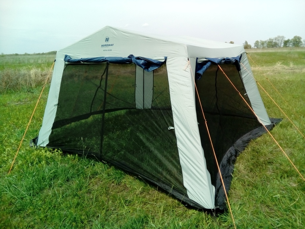 Куплен в 2010 г. Шатер для длительной стоянки. Очень удобный, большой и добротный. Каркас из стальных трубок, не так как у дешевого Китая. Материал полиэстер 68Д/190T с водонепроницаемостью 800. 4 - входа. Размеры - 300см.х300см. Высота - 200 см. Вес примерно - 10-12кг. В сложенном состоянии примерно - 22см.х98см.х22см. Состояние на 4. Есть одна дырочка диаметром 5-6 мм. от искры костра. Цена 2 600 грн. + Торг. Киев. Тел. 050три56три50три. |