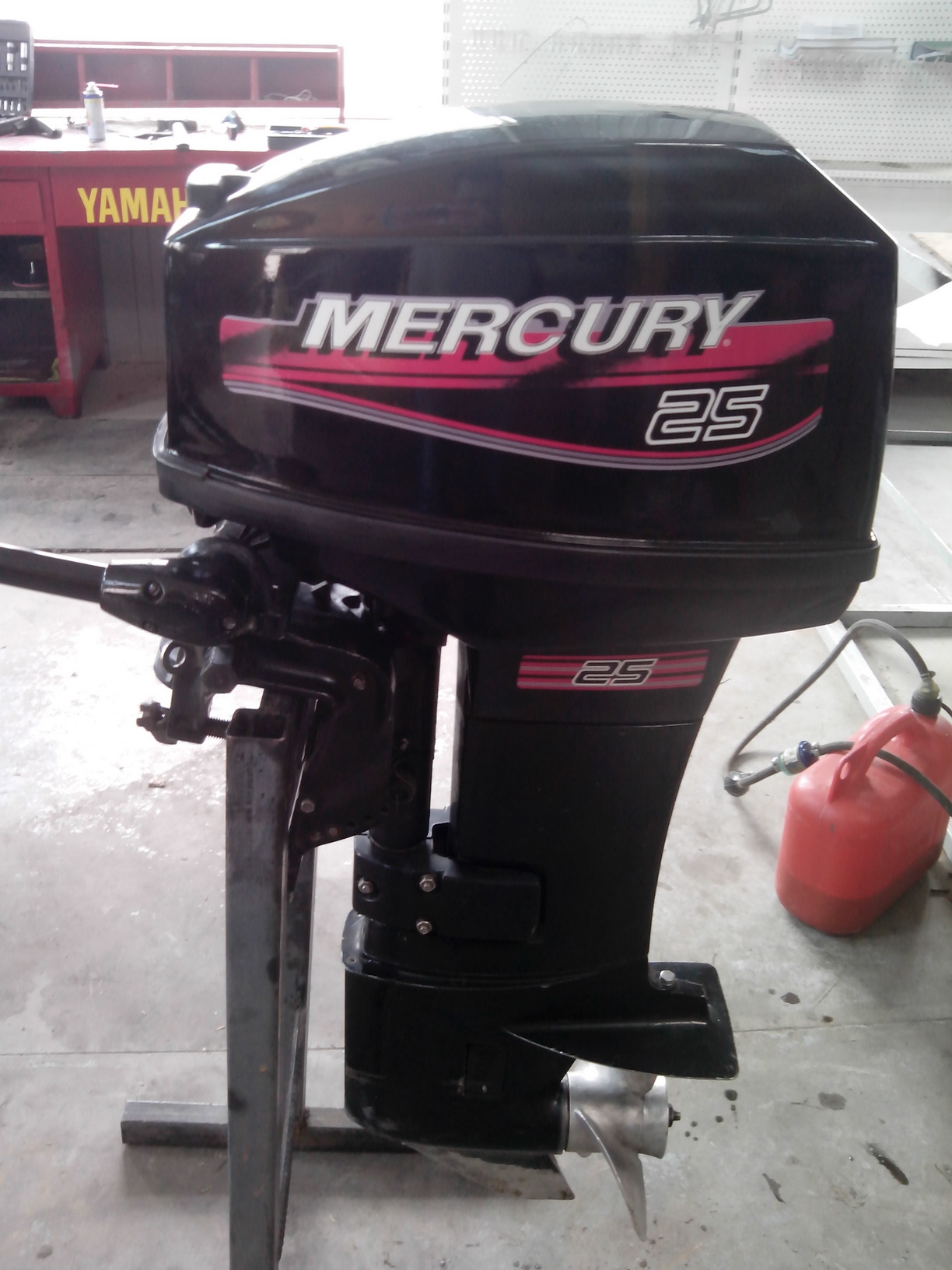Продам лодочный мотор Mercury 25 л.с., 2-х тактный, короткая нога, румпель, год выпуска 98, карбюратор.