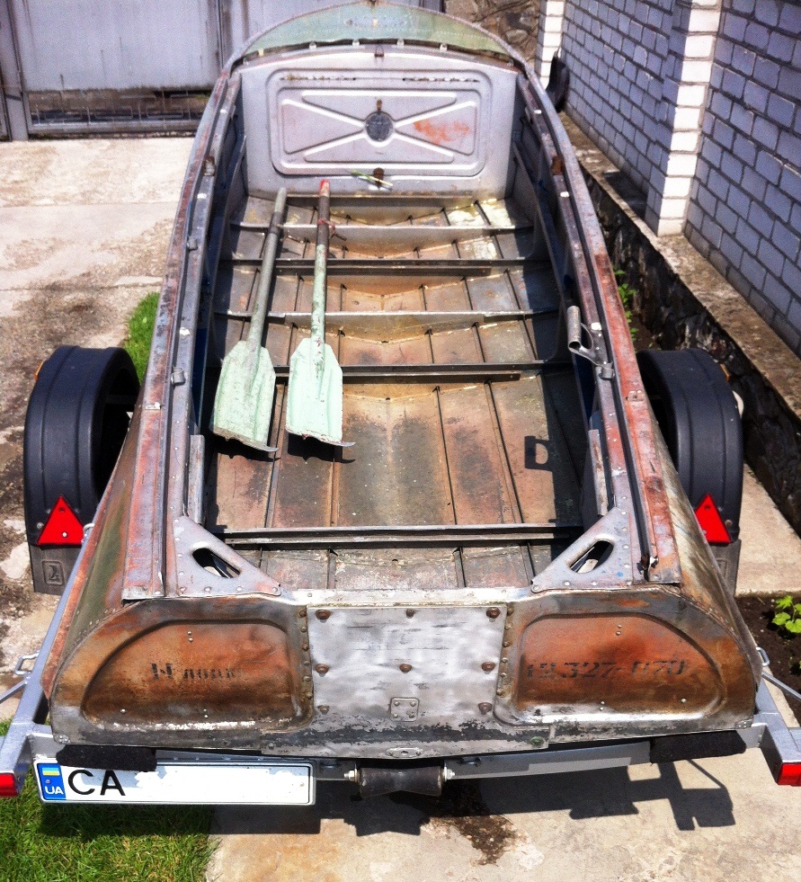 Продам лодку КАЗАНКА в хорошем состоянии, ни разу не красилась. Коррозии нет , киль не протерт, транец целый. Есть одна латка по борту, выше ватерлинии (видно на фото). Стоят родные баки плавучести. Есть весла и финская фанера на пол. Продажа БЕЗ ЛАФЕТА. Цена - 7900 грн.