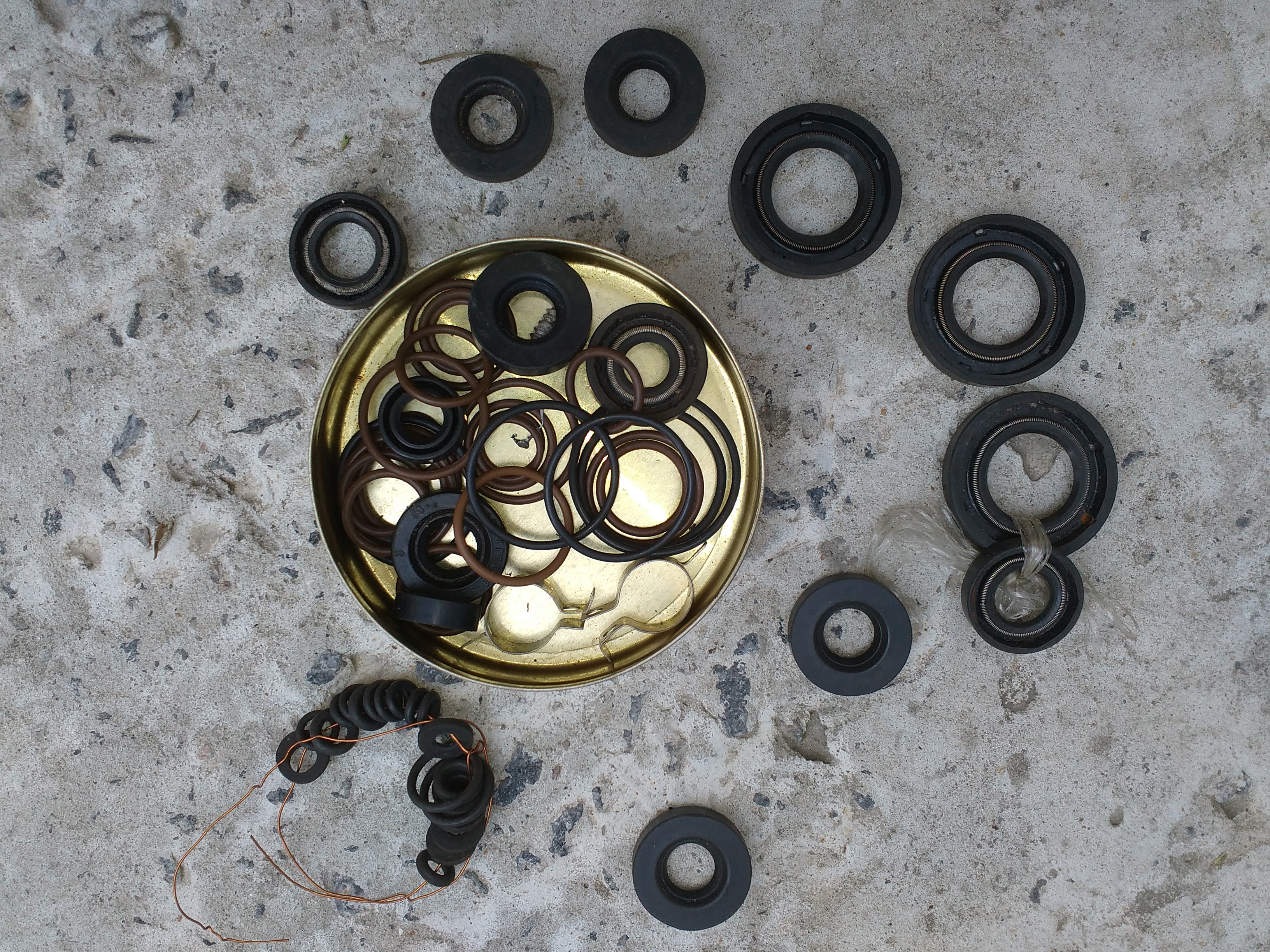 Комплект родных колец на Вихрь 25, крышка карбюратора с поплавком и кое-какие сальники и РТИ на Вихрь. За всё хоцца гривен 200.