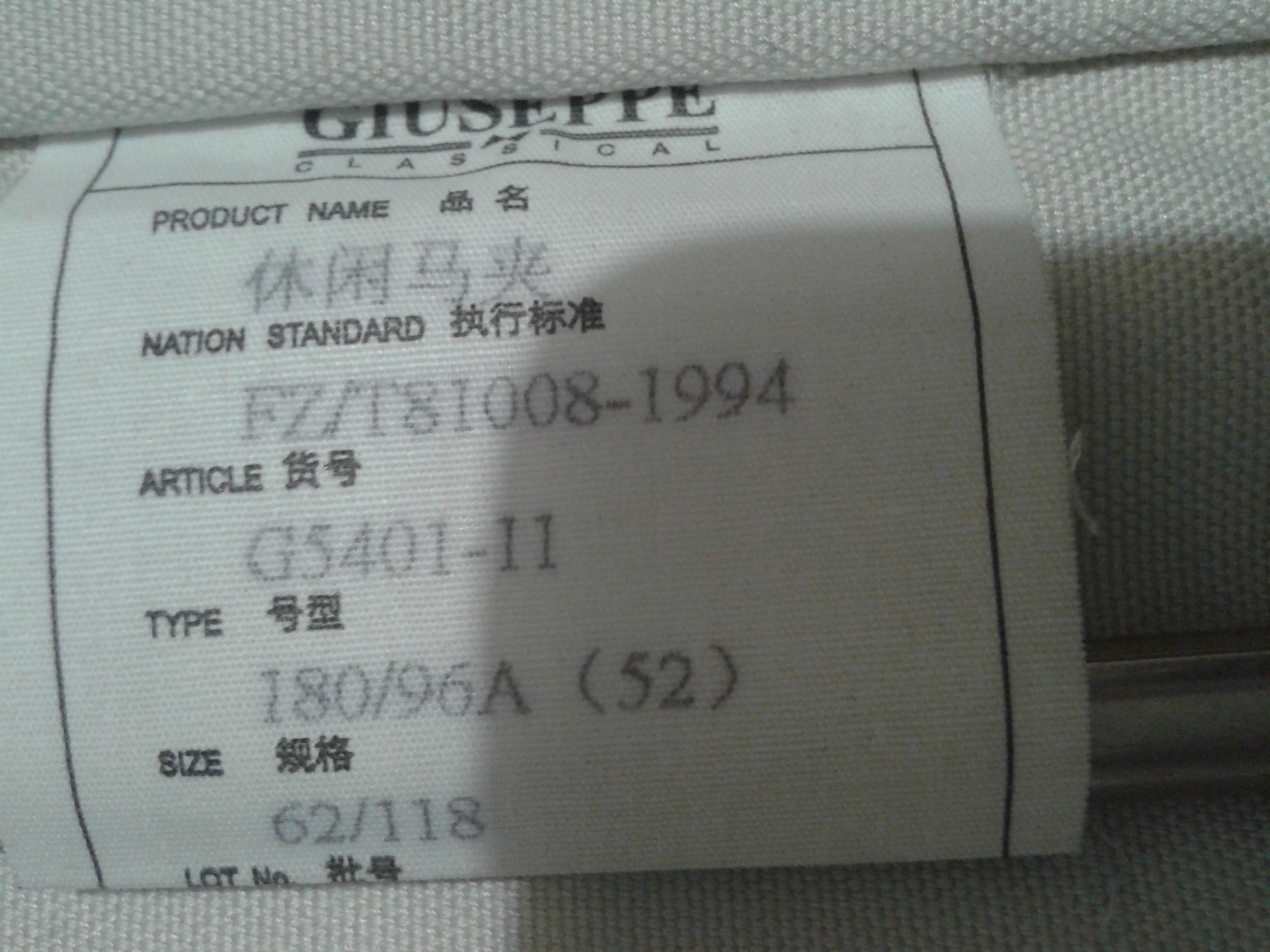 Размеры одежды и обуви, Китай