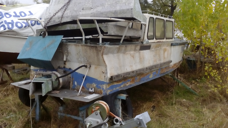 Корпус стальной, палуба и сдвижная крыша - дюраль. Катер в комплекте на 90%, но в течение лет пяти не обслуживался. Требует реанимации по полной. Я им управлял, аппарат очень достойный для мелководного водоема. Мой интерес в этом предложении - восстановление катера под ключ. Занимаюсь этим профессионально более 30 лет.