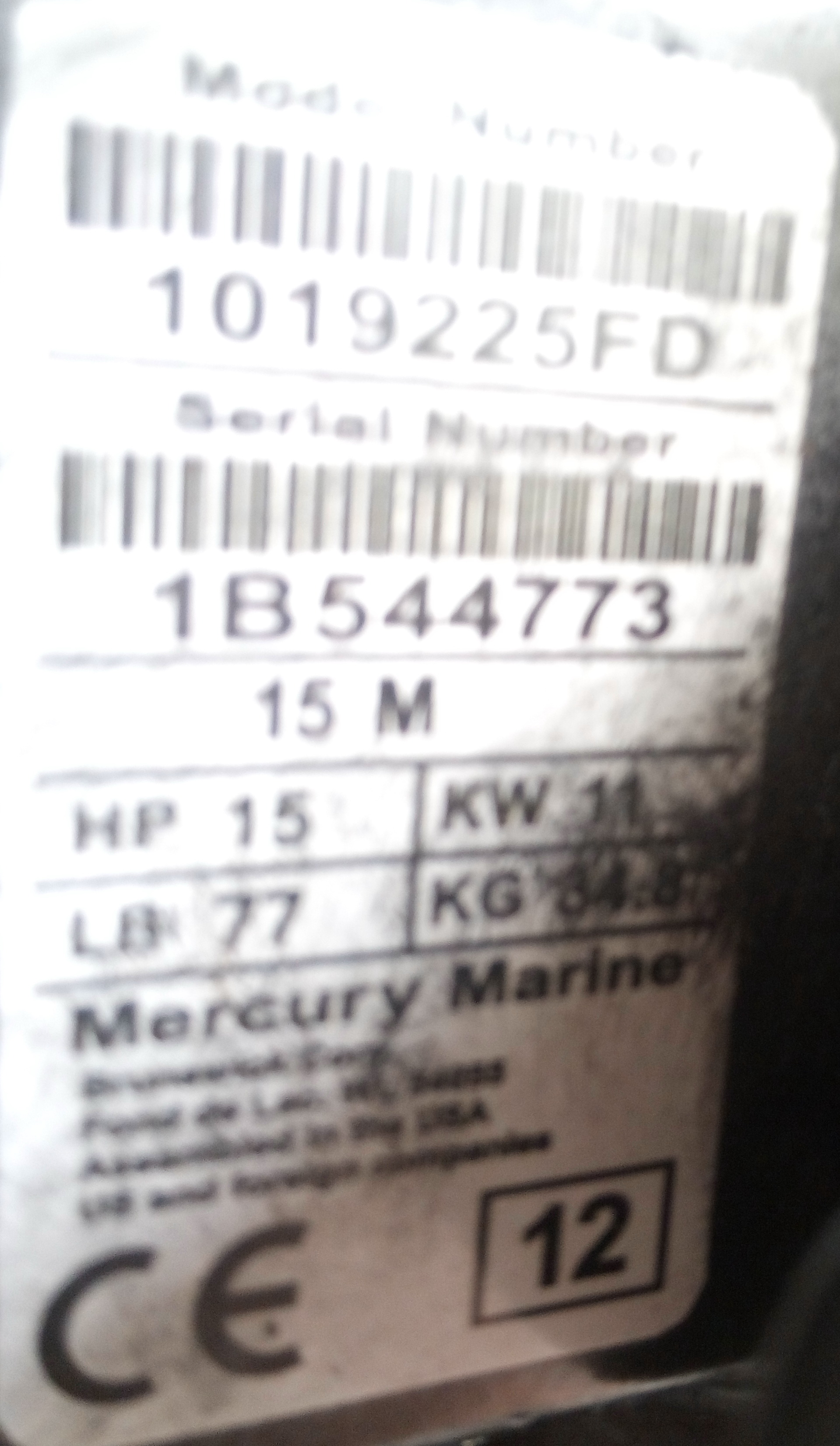 Типово Re: Лодочный мотор Mercury M15 2012r