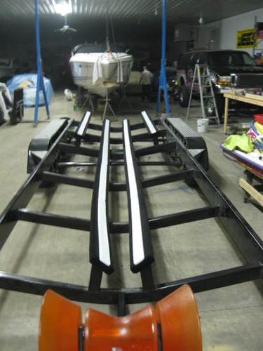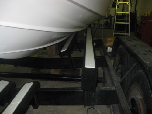 Применительно к лодочному лафету – америкосы уже давно используют в качестве накладок на ложементы для снижения трения и облегчения сталкивания лодки в воду (см.фото) . Дополнительный плюс для пластиковых лодок в том, что песок застрявший в ковролине ложемента не царапает гелькоут днища.