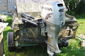 Продам свой рабочий комплект, все с документами. , Honda 40D инжектор-2008 года, , 508-я нога, подобранные 2 винта, 130 м\час-пресная вода, один хозяин, регламентное ТО, куплен в Киеве у официального дилера. Лафет 2009г- Киевская регистрация. 2 тента (ходовой, транспортировочный), чехол на мотор, эхолот Lowrance X126 с, съемные транцевые плиты, транец нарощен. Вспомогательно-тролинговый электромотор (мах 72А) с д/у, бак 40л.,авт. помпы 2 шт.(палубная, транцевая), ходовые огни, спинингодержатель, полы бакелит фанера, вращающаяся сидушка с электроподогревом большой транцевый рундук, акум. 100а.ч., отключатель массы, приборы и др. Все делалось для себя Компьютерная диагностика двигателя в подарок. Аргументированный торг.