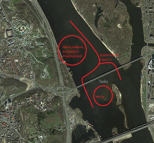 В районе между Гидропарком и Левобережкой шел вниз и перед маленьким метромостиком как только справа закончилась венецианская протока отбил лопасть. На фотке крестиком обозначил. Правда корма была пригружена, проходил там пустой нормально.