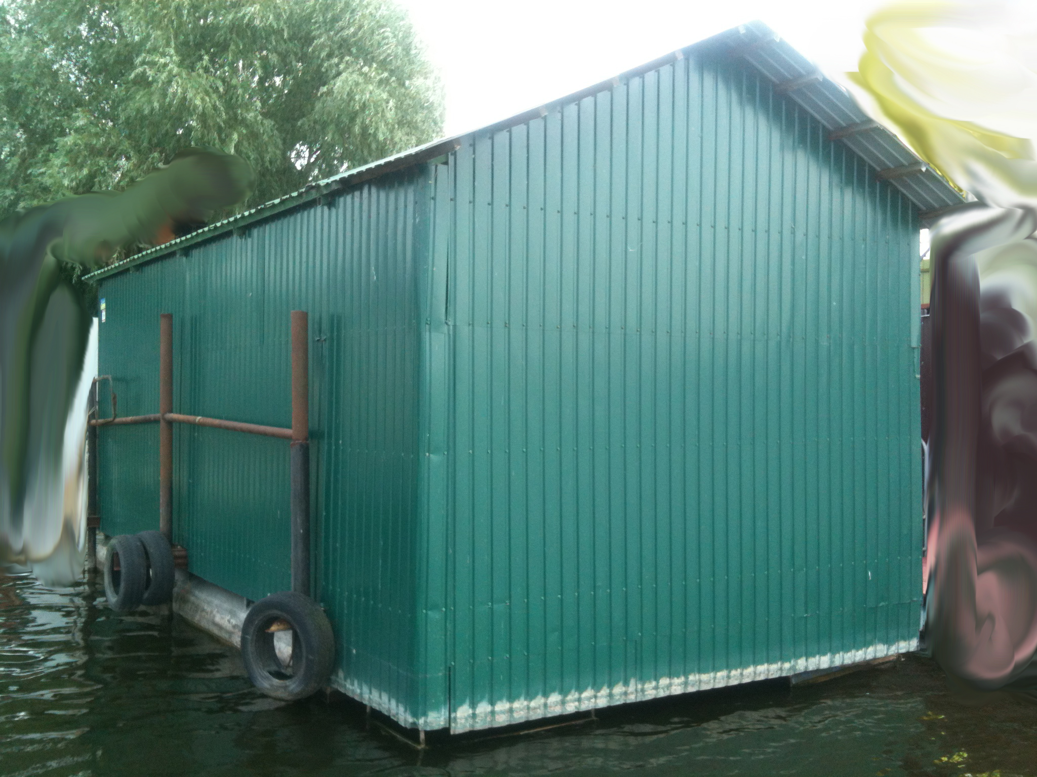 Гараж (ПЛАВУЧИЙ) для катера на воде. Проведена модернизация в 2014. Обшита профнастилом. Размер 7х3.7(наружный) . Можно транспортировать по воде, стоит на днепре под киевом. Можно хранить (влазит) внутри 3 лодки, одна над одной. Есть подъемник для лодки. Свет, 2 розетки. Внутренний размер (под катер) 5800х2250 высота от ватерлинии 2500.
