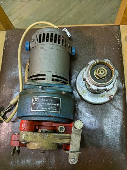 Уходит только комплектами - механический и электрический. Или договоритесь кому мотор-редукор, кому шпулю. Контактор КМ-600Д-В. Тормозящее устройство штатное с этого полуавтомата, примерно 120 мм высота, вверху диаметр 60-70. Сейчас под рукой нет. Сколько кило выдержит - х.з., думаю кил 40 не погнут ось.