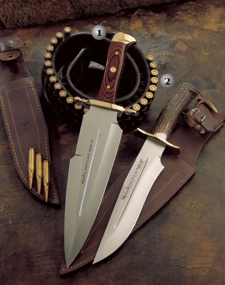 Внушительный нож с несокрушимым клинком, имеющим фальшлезвие по всему обуху. На голомени клинка с обеих сторон имеются внушительные долы, добавляющие прочность клинку толщиной в 6 мм. При солидной толщине клинка нож имеет хорошие режущие свойства. Это достигнуто широкими спусками обратной линзовидной формы и толщиной у режущей кромки 0,7 мм. Монтаж рукояти сквозной, неразборный. Рукоять большая удобной для работы формы имеет на навершии отверстие под темляк.