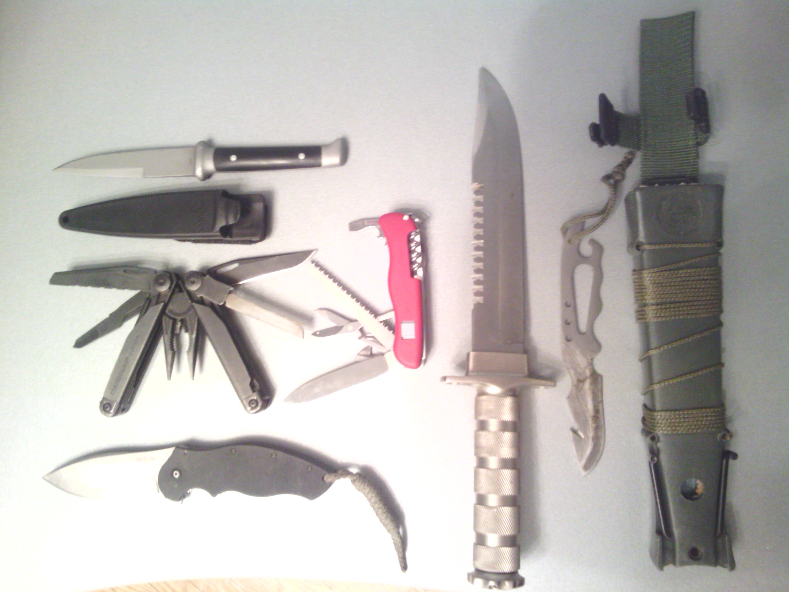 1. Фото - Gerber, Smith & Wesson CKSURTN танто, Kabar Black Tanto Knife - 2 и 3 на фото это военные ножики; 2. фото - Kershaw Tyrade model 1850G10SW, Leatherman Surge, Kershaw Military Boot Knife, Victorinox Forester, Aitor Jungle King; 3. фото - Kershaw Tyrade model 1850G10SW - карманный нож колбаску подрезать; 4. фото - Leatherman Surge - рабочий инструмент со сменными пилочками и напильничками незаменимый помощник как дома так и на природе, в лодке в машине (много раз выручал); 5. фото - Kershaw Military Boot Knife - на ноге чувствует себя уверенно и с ним как то спокойнее; 6. фото - Victorinox Forester - тоже беру его в походы (очень удобные ножницы и пила, у меня это уже второй нож этой фирмы); 7. фото - Aitor Jungle King - это и нож и топор и лопата и молоток и т.д. и т.п. но хлеб им резать неудобно; 8. фото - Gerber - карманный нож яблоко, апельсин почистить. Также в машине лежит Leatherman Supertool 200 и Colt Tanto Knife. |