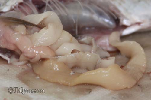 Так что ж делать? Во-первых, стоит осознать, что рыба для лигулы лишь носитель. Основной хозяин, где развивается и плодится червь – птицы и млекопитающие. Мы с вами в том числе. Жизнь свою личинки начинают в маленьких рачках, которыми питается рыба. Заглатывая рачков, рыбки получают изрядную порцию личинок паразитов. Попадая в кишечник, личинки начинают рост и с помощью неких крючочков, проходят сквозь стенки, оседая в рыбьей мякоти и внутренних органах. Причем размеры столь незначительны, что разглядеть личинку можно только под микроскопом. Так что, тот факт, что вы в рыбе не обнаружили такого червя, утешать вас не должно. Велика вероятность, что рыбья мякоть нашпигована личинками. Питались-то все рыбки одинаково, рачков с личинками одних и тех же ели. Просто червь в ком-то развился, в ком-то затаился. Рыбу-то что, выбрасывать? Если червь столь велик, как на фотографии, то безусловно. Плоть у такой рыбки вялая, дряблая. Какой смысл её есть? Если червь только начал свой рост – длиной не превышает длины рыбьего брюшка, то достаточно аккуратно вычистить внутренности и соблюсти меры предосторожности при приготовлении. И если лигула для человека безопасна, то совсем не факт, что в рыбе нет каких-либо других личинок менее мирных паразитов. Главный наш враг – не червь, он лишь сигнал, а его личинки. Так вот их убивает: - длительное выдерживание в крепком растворе соли - термообработка не менее получаса - замораживание не менее трех часов Общие правила: - с рыбой работать в перчатках - ранки от уколов костей и плавников немедленно обрабатывать - разделочную доску, нож и инструменты для обработки рыбы тщательно мыть и обдавать кипятком.