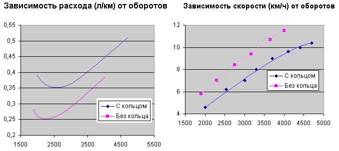 ХМ..... так получаеться он с кольцом увеличил расход и понизил скорость?????