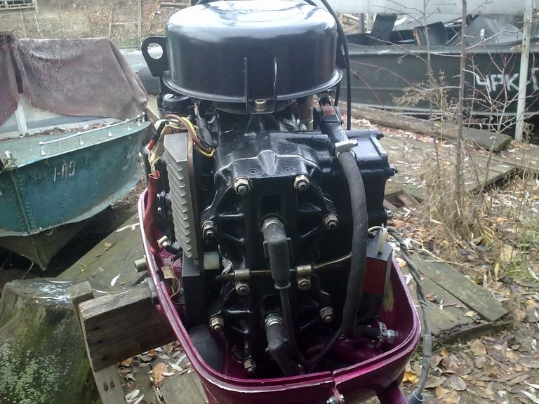 В эксплуатации с 2012 по 2015 год (в 2016 был куплен другой мотор). Редуктор, торсион, колен вал новые ( заменены в августе 2015). Переделана система охлаждения и установлен клапан воды(рекомендация с завода), обесшумлен колпак. Винт стоит 305 (12 дюймов) П-4 со шмотками тягает хорошо. На фотках без румпеля, но румпель уже на месте. Заводится на холодную с третьего раза, работает нормально. В довесок отдам карб К68Д (сейчас стоит родной К68И).