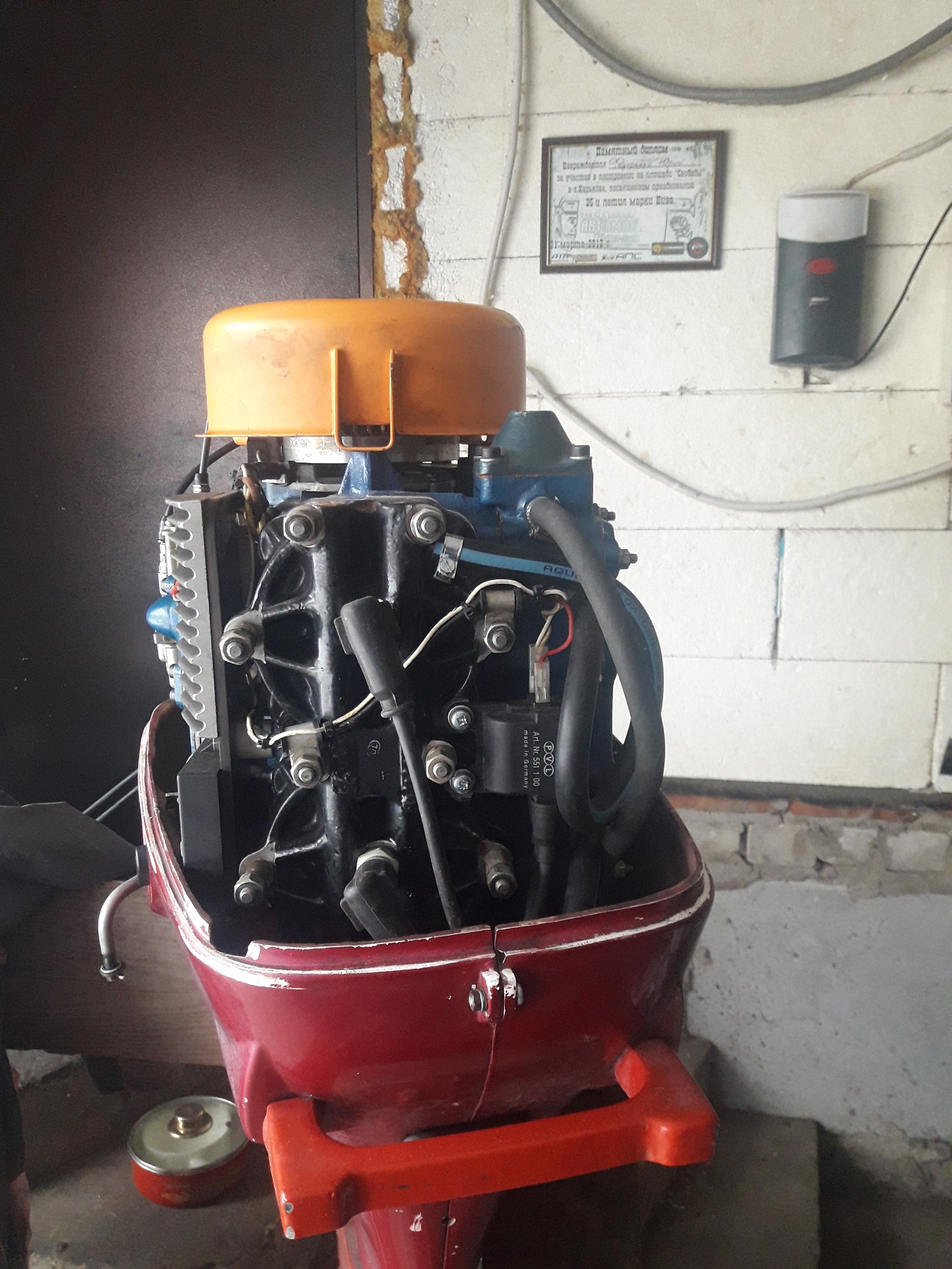 В комплект продажи входит: мотор, коммандер, троса ( 9 футов), тахометр (адаптированный ВАЗовский), три винта ( 286, 330, 356) Старый блок цилиндров с поршнями, головка блока, новая рессора, комплект лепестковых клапанов с домиками.