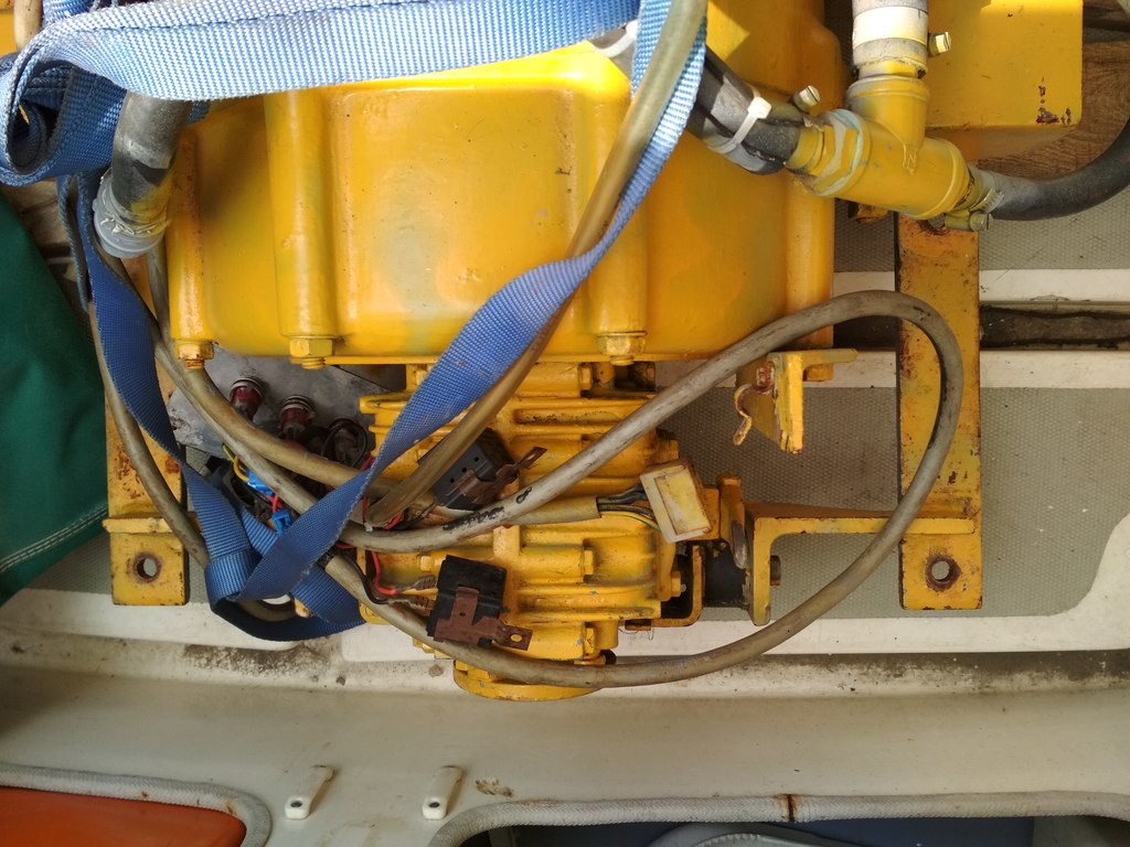 С реверс-редуктором и всем навесным оборудованием: стартером, генератором, водяным насосом и панелью управления.