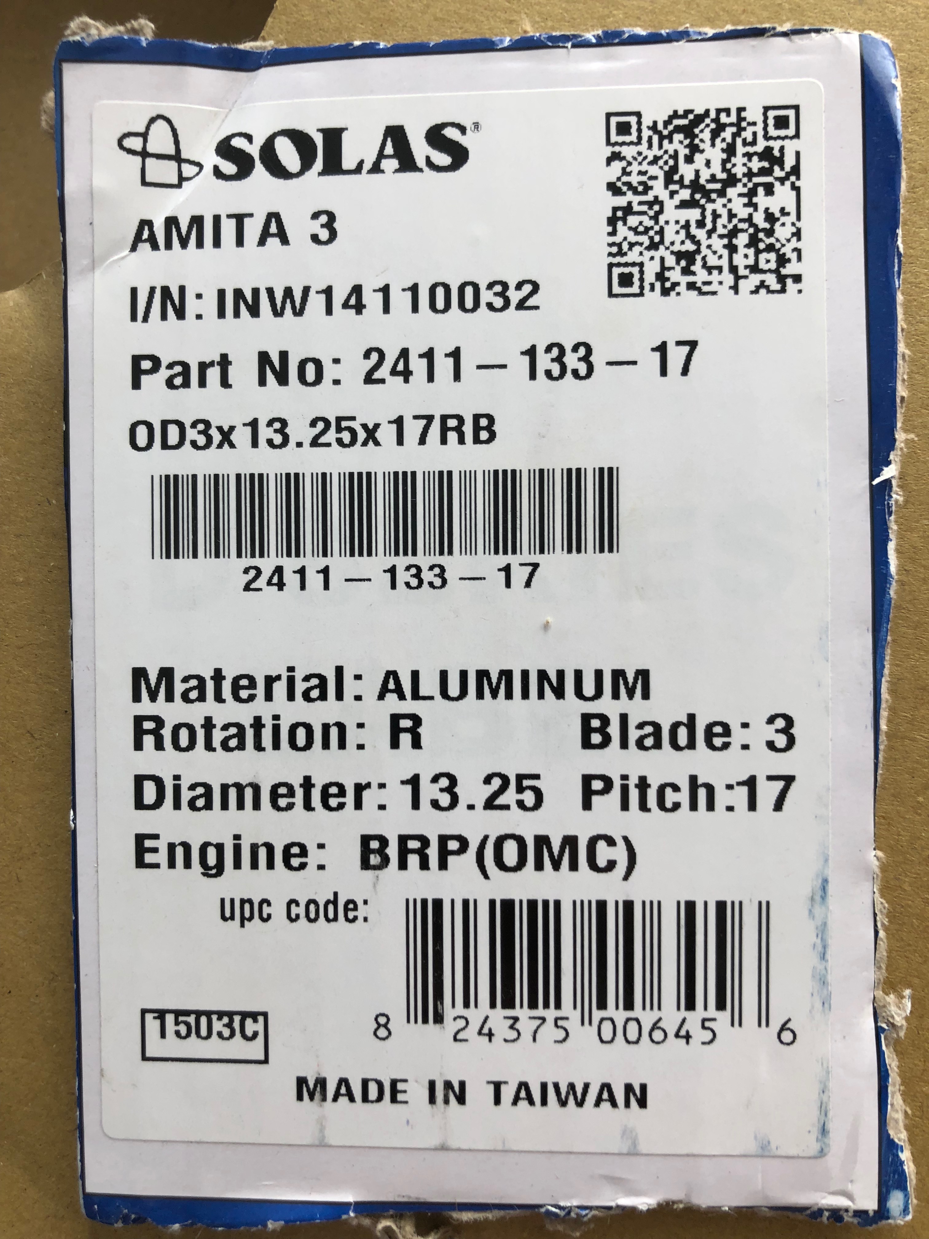 Винт Solas Amita 3 13,25х17