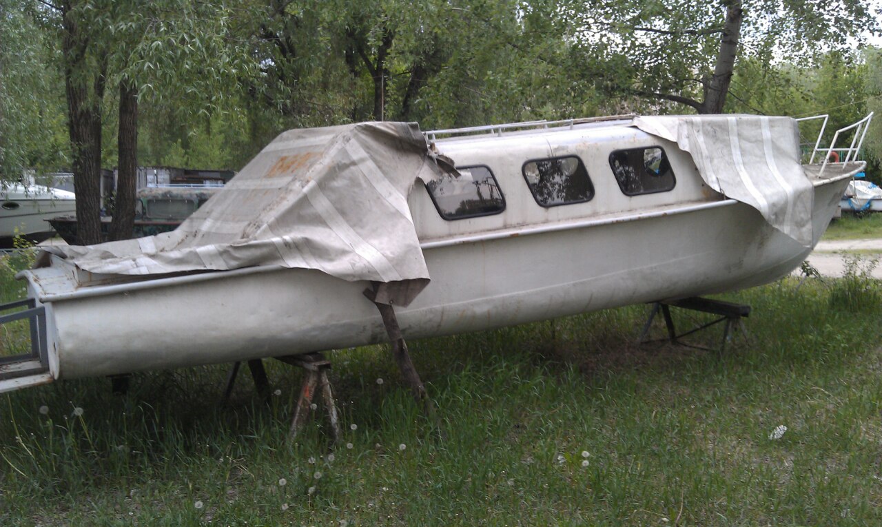 Стоит на РОП6. Дня 3-4 назад смотрели ее с Фишером. По разведданным ее зимой продали за долги за 300 уе. Теперь вот продают за 1300 (видимо те, кто купил). Длинная и оч.узкая, по отзывам старожилов РОПа - весьма валкая. Состояние корпуса - убогое, вся кривая (если вдоль посмотреть). В общем - нет смысла. ЗЫ - но если приспичило ваять длинномер - там рядом в весьма сносном состоянии корпус (без мотора) 8,14м*1,85м.