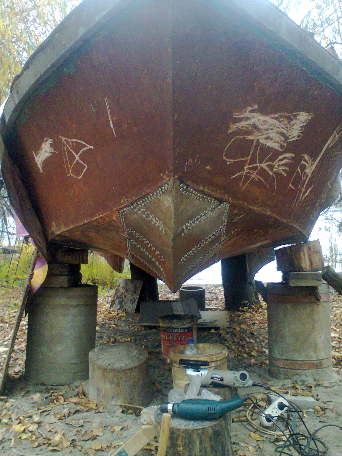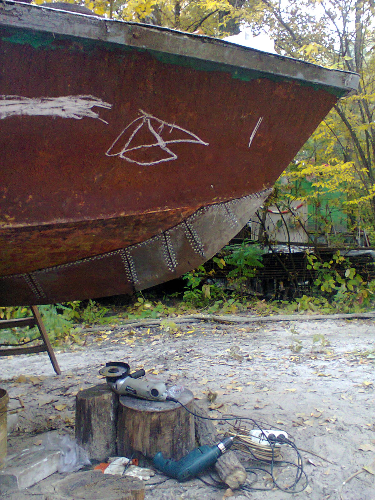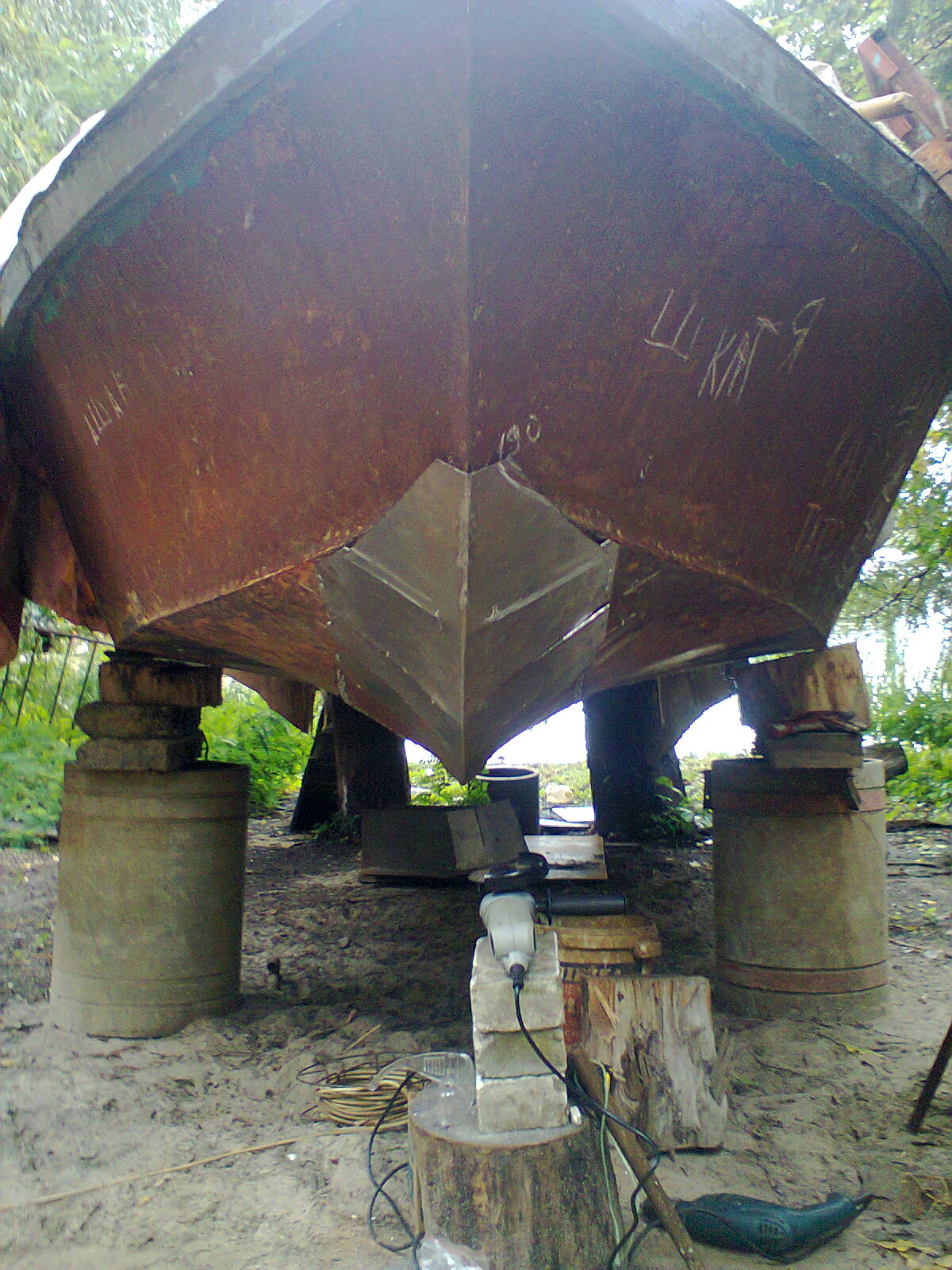 2) выставил катер на высокие козлы - что бы с днищем работать можно было.