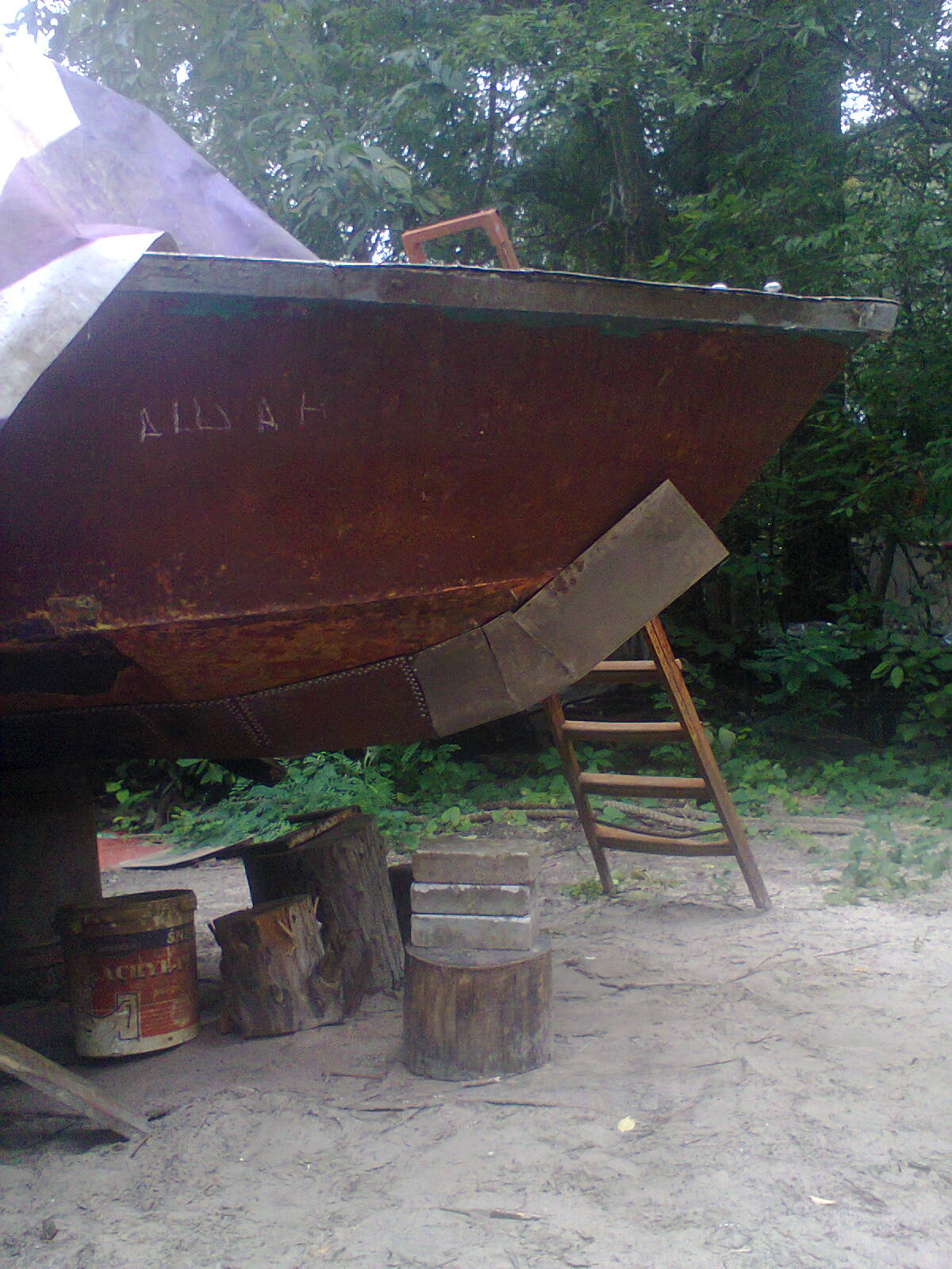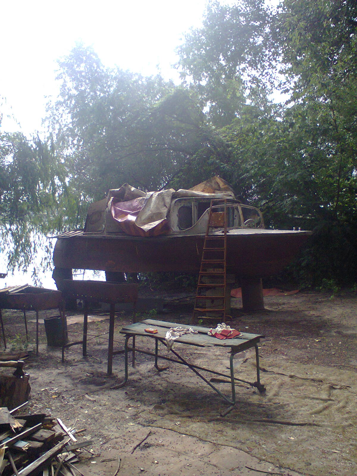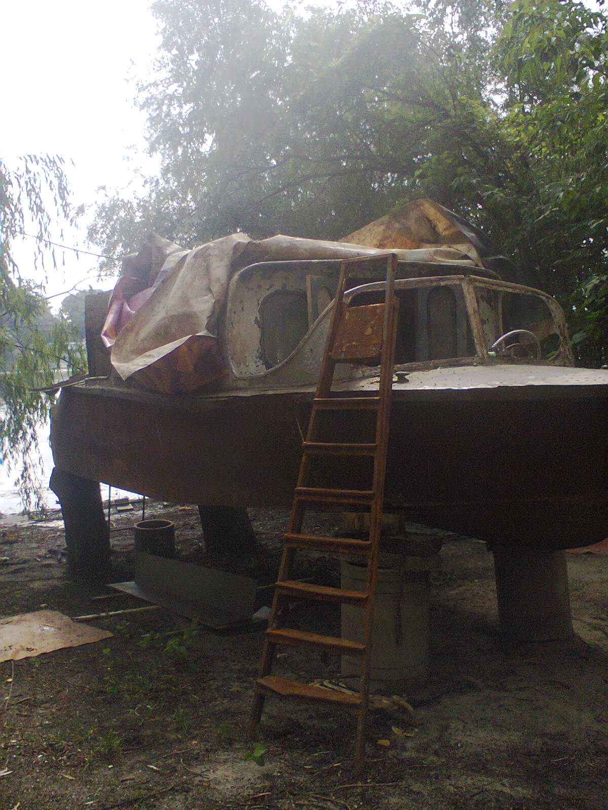 2) выставил катер на высокие козлы - что бы с днищем работать можно было.