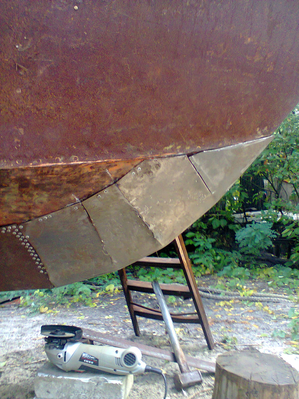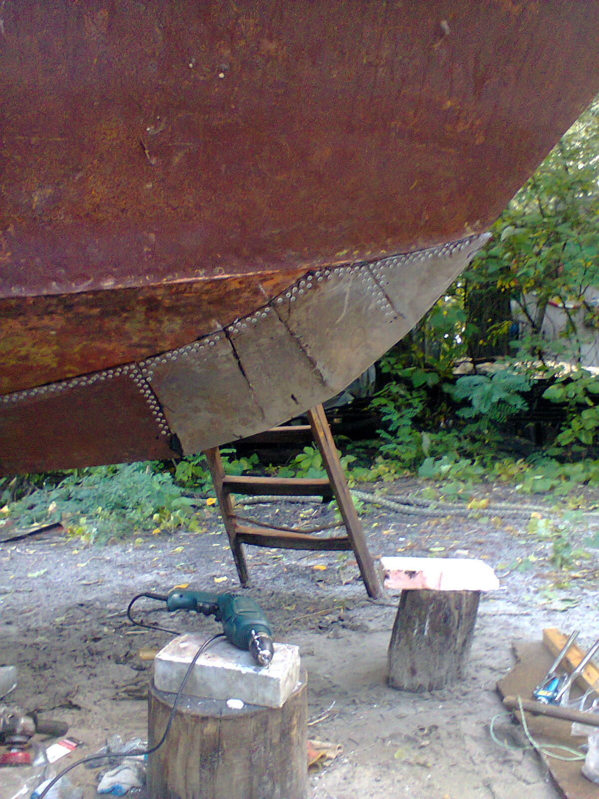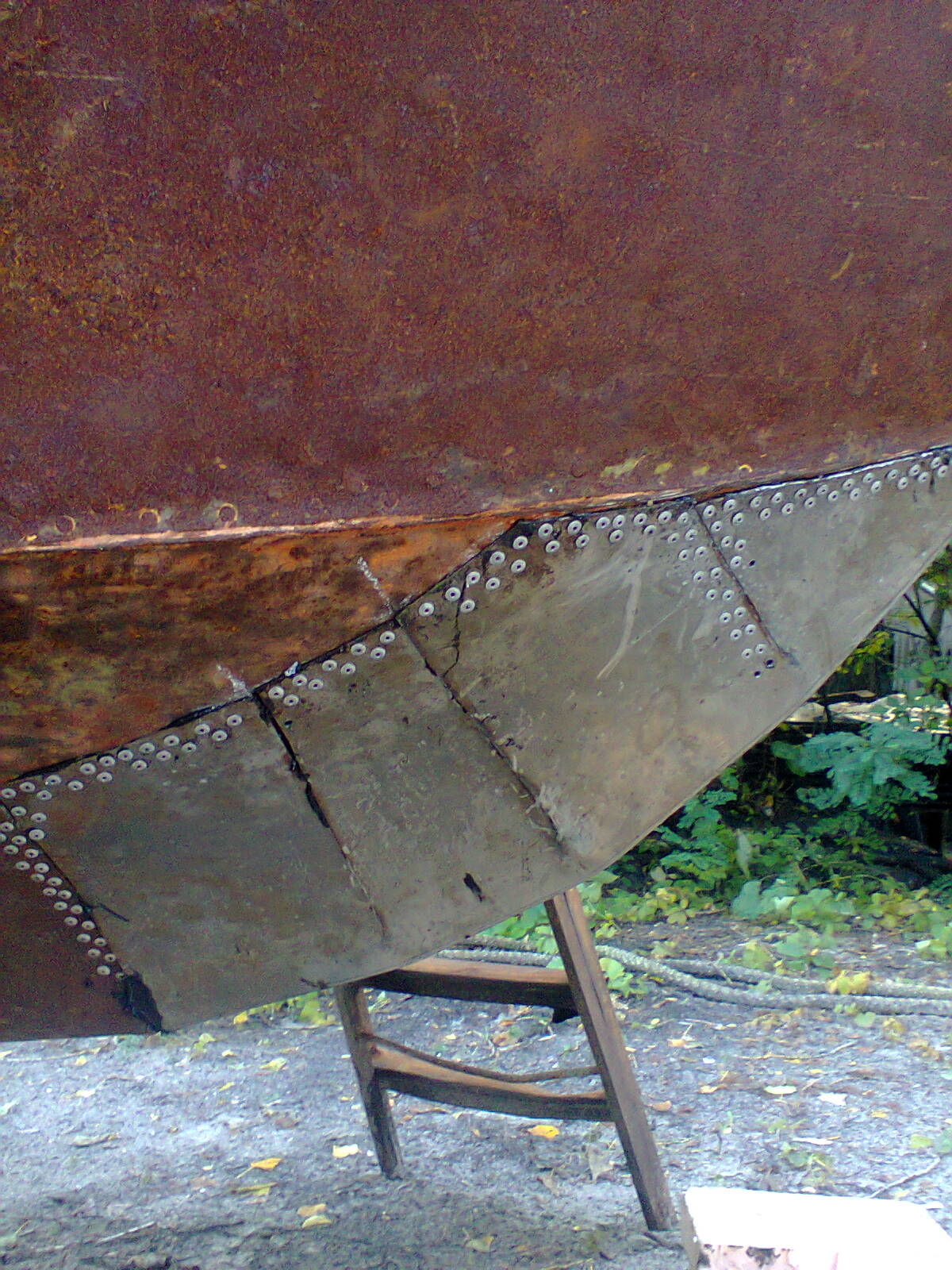 На нос нужно килевую накладку (уголок) т.к. с тем, что есть - одна неаккуратная парковка носом в бон и 2ку порвет и потянет, под всю латку натечет вода, зимой - отслоит накладку от металла корпуса ну и за тройку сезонов сквозная дыра.