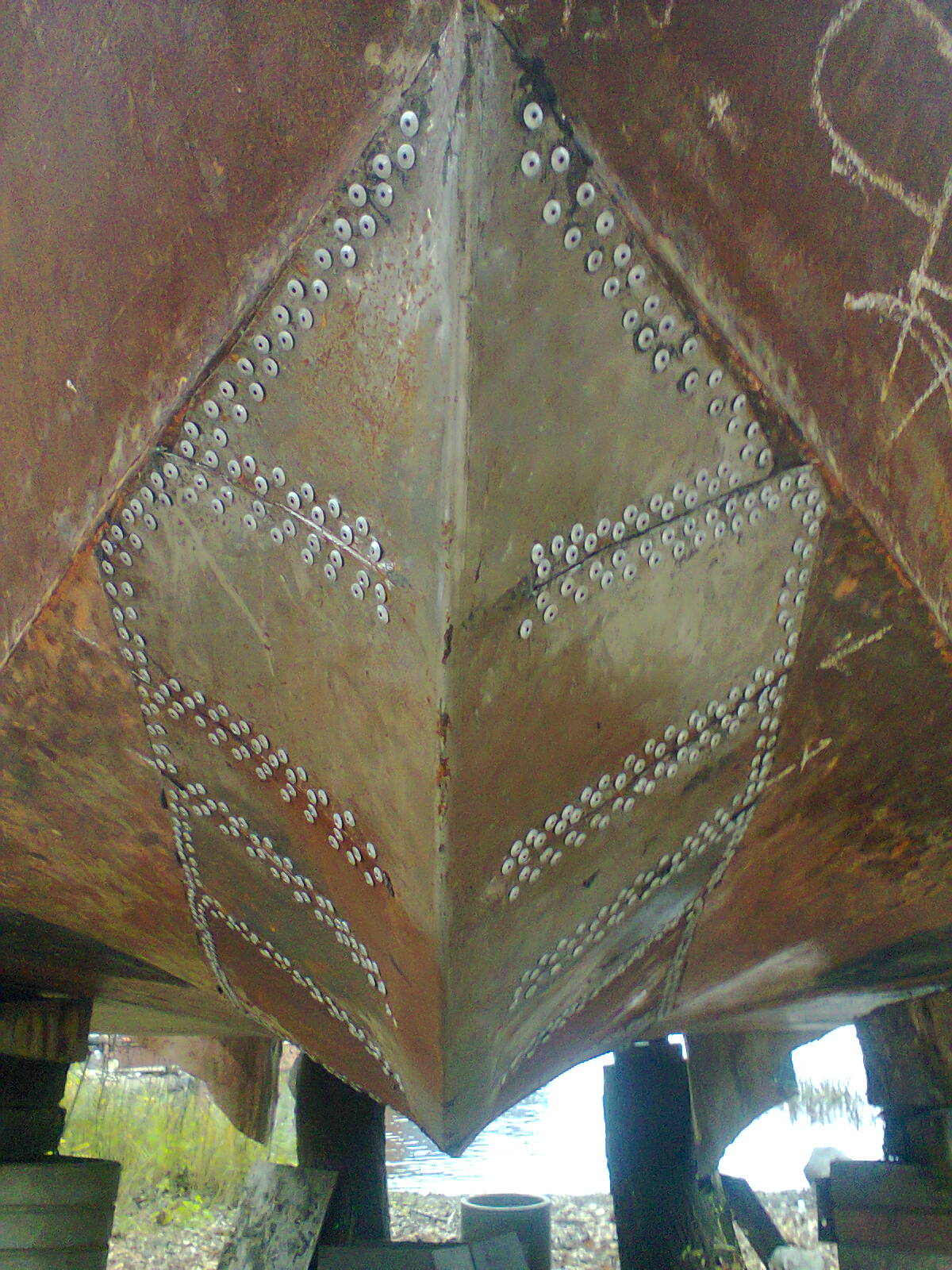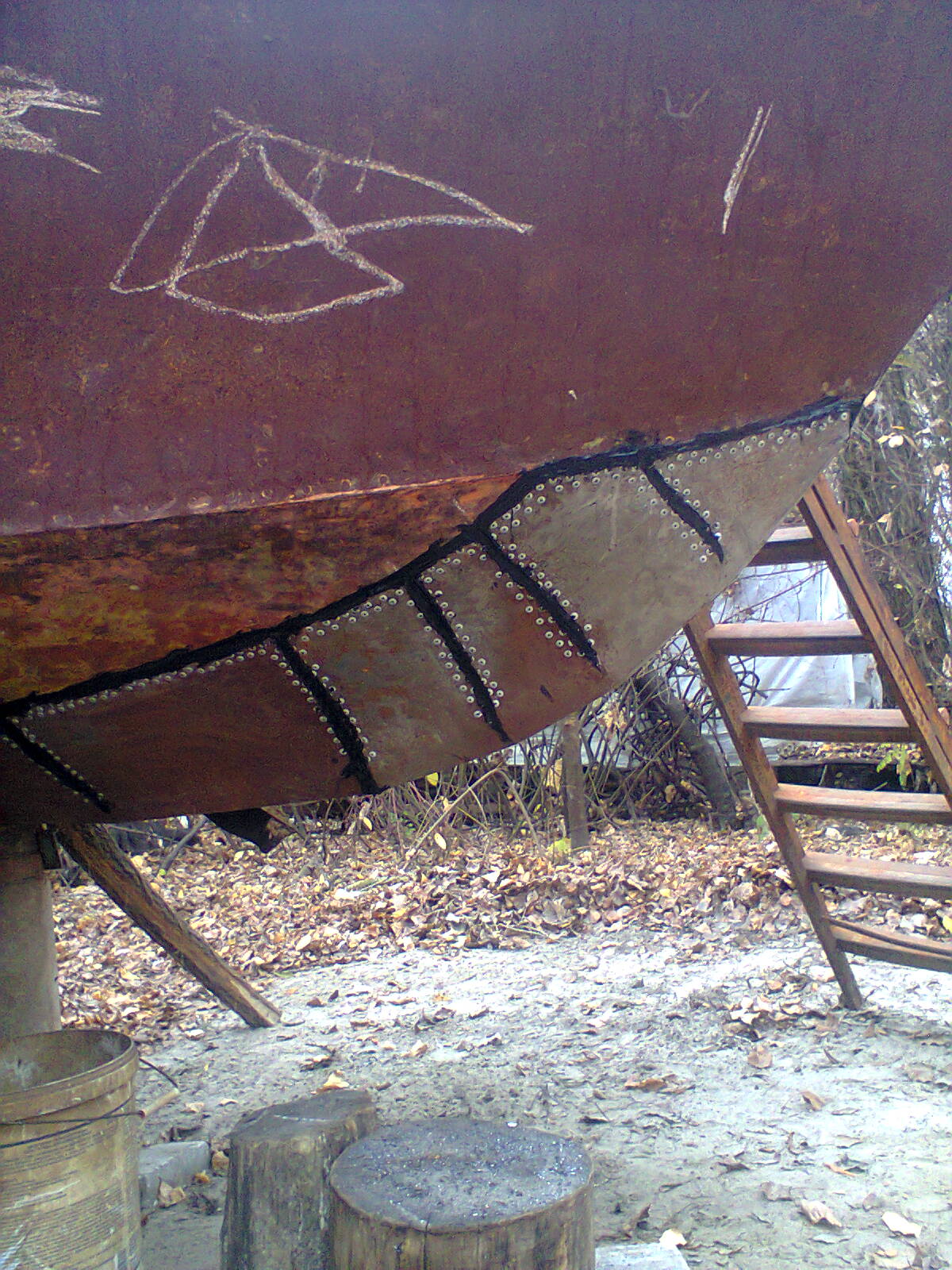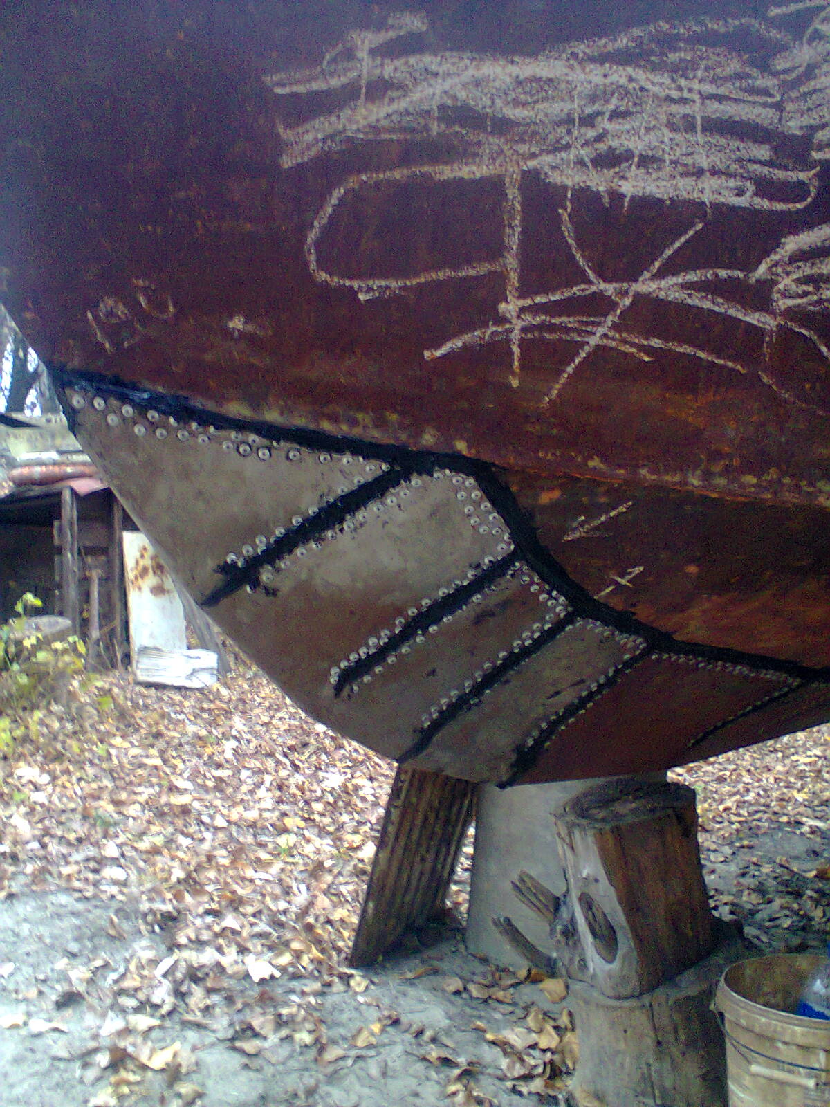 На нос нужно килевую накладку (уголок) т.к. с тем, что есть - одна неаккуратная парковка носом в бон и 2ку порвет и потянет, под всю латку натечет вода, зимой - отслоит накладку от металла корпуса ну и за тройку сезонов сквозная дыра.
