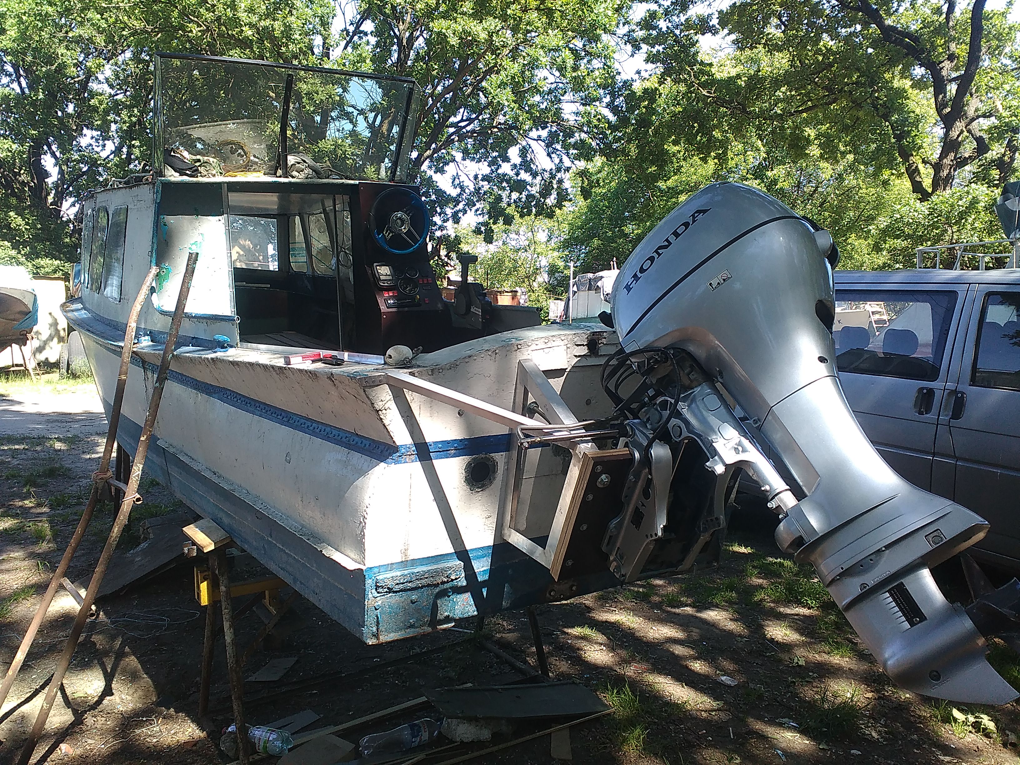 Ну вот было принято решение о замене дизеля Д65н на подвесной мотор Сузука дф70.Причина экстримальные походы по Десне с битьем винтов и гнутыми валами плюс вес дизеля-500 кг.