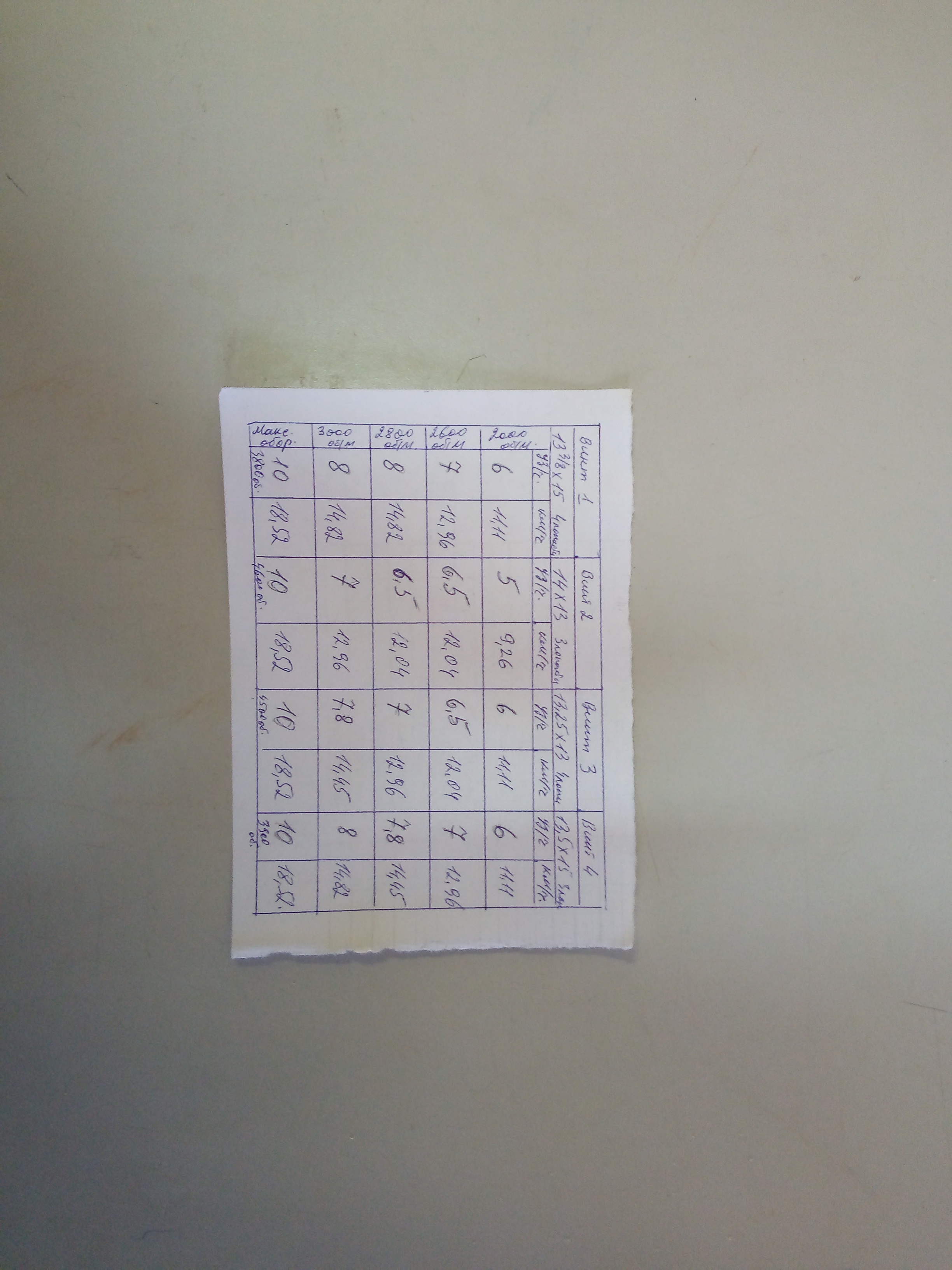 1. 3х13,5х15 - винт раскрутился до 4000 об/мин.