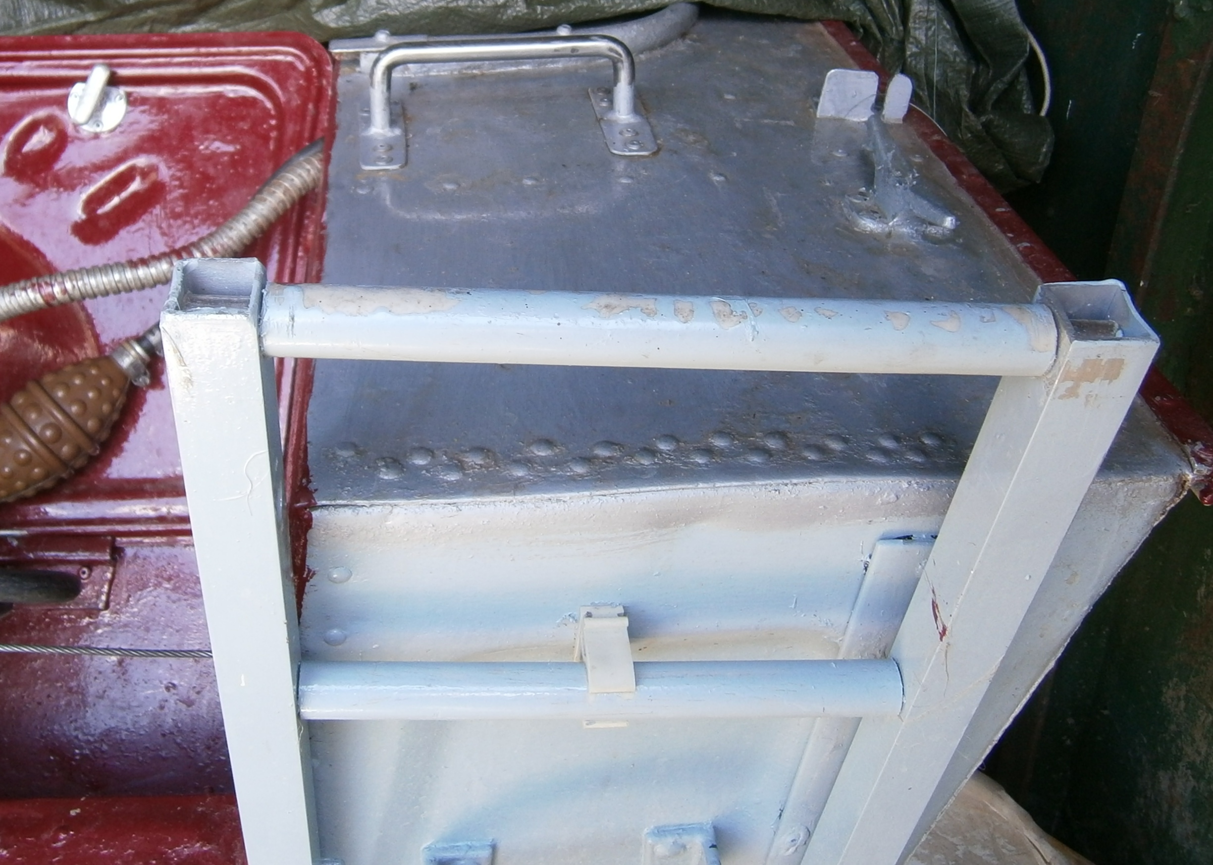 Окончательный вариант -с ручкой , удобно заходить с кормы, есть за что взяться,и удобно подниматься по лесенке,правая нога на лесенку, левой на транец. Всё удобно.