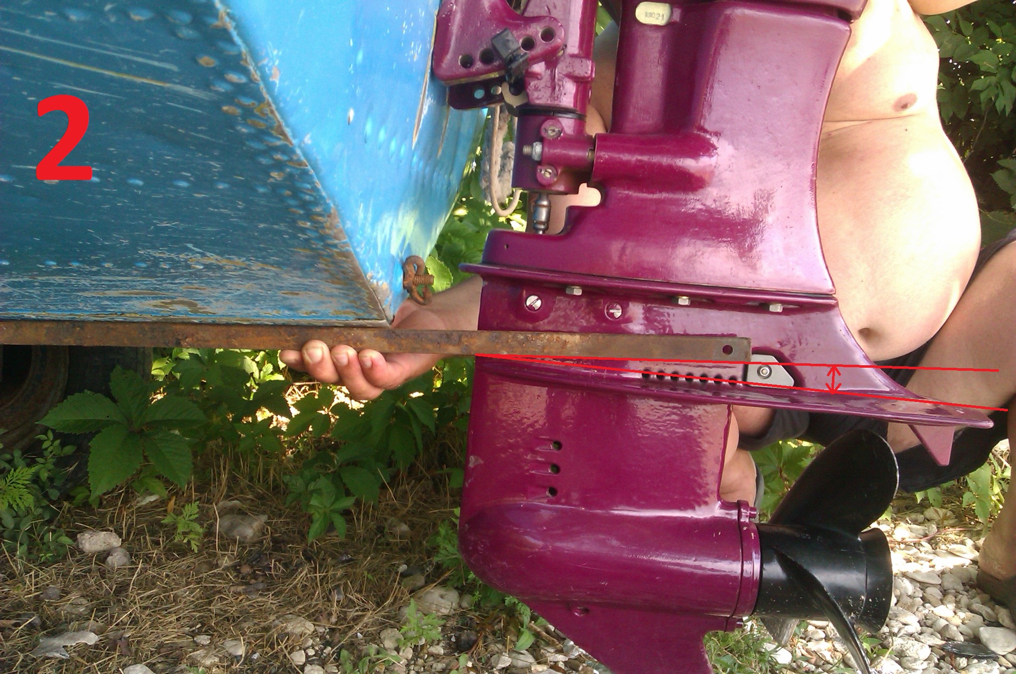 Всем доброго времени суток! хочу поделиться своими опытами) в общем вся предистория написана и ситуация требовала решения! посидевши, подумавши я решил сделать клин, толщину решил определять опытным путем. поскольку АКП на предпоследнем отверстии была абсолютно параллельна днищу и ниже на 3 см т.е как пишет и учит книжка, НО на практике этого мало а опустив мотор на одно отверстие имеем потерю скорости я заморочился и для наглядности сделал фото.