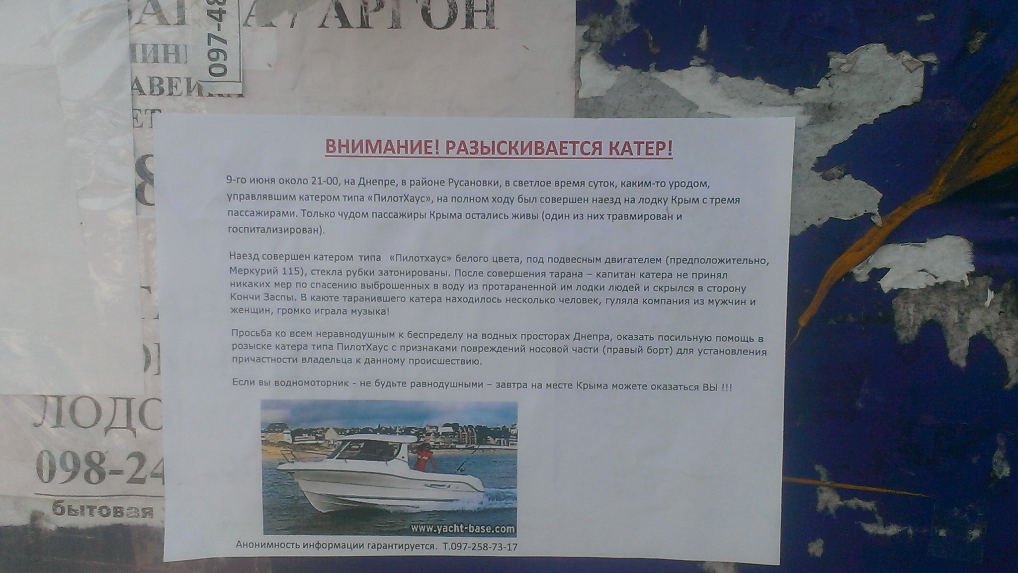 Развесил объявления, может кто отзовется. В яхт-клубе много тусуется киевлян (он вроде как от авиационного университета?).....