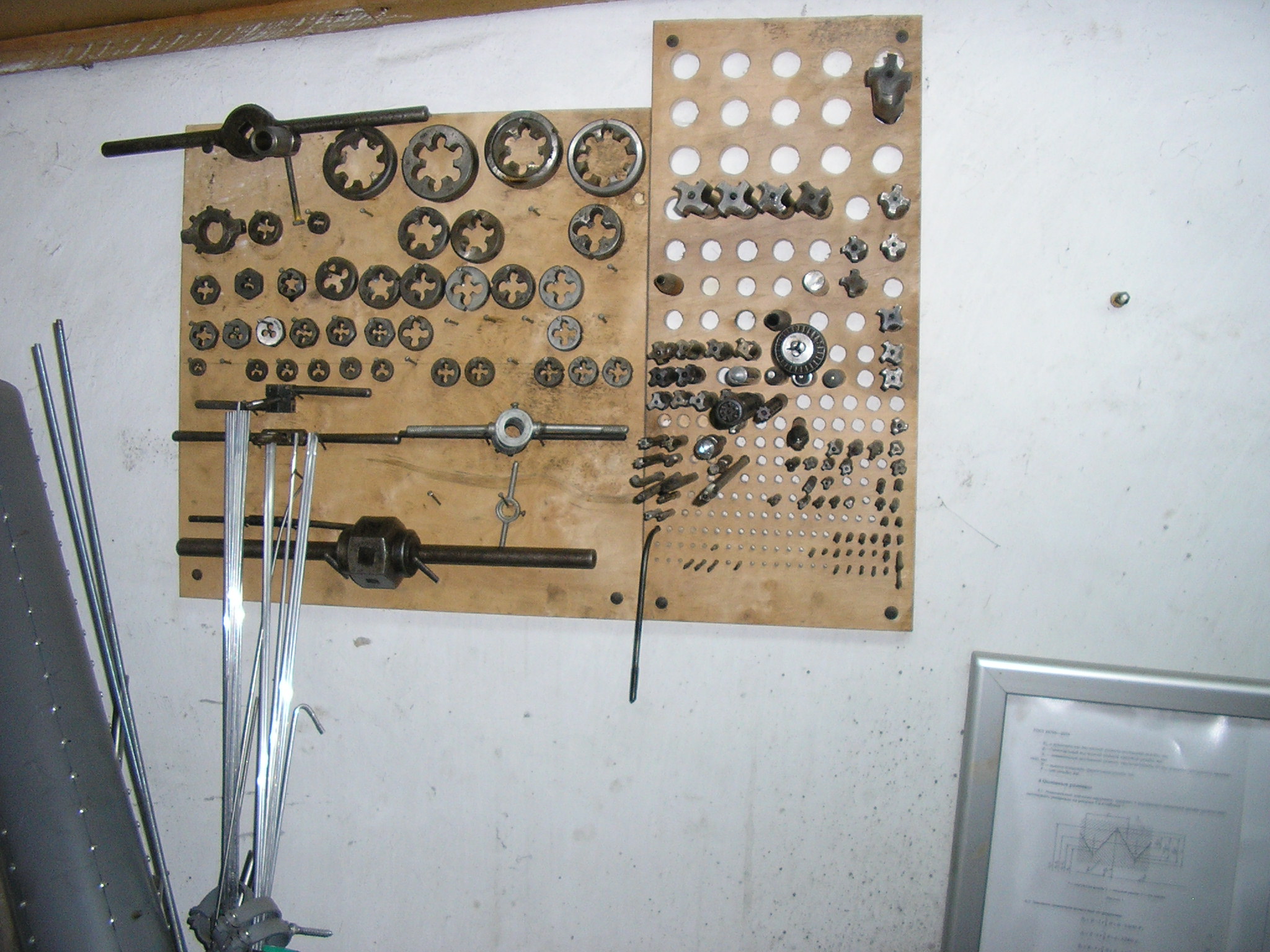 Ну и органайзеры в стиле дешево и сердито: полочки для резцов - полки поломанного и выкинутого холодильника. Под мечики и плашки с образков фанеры.
