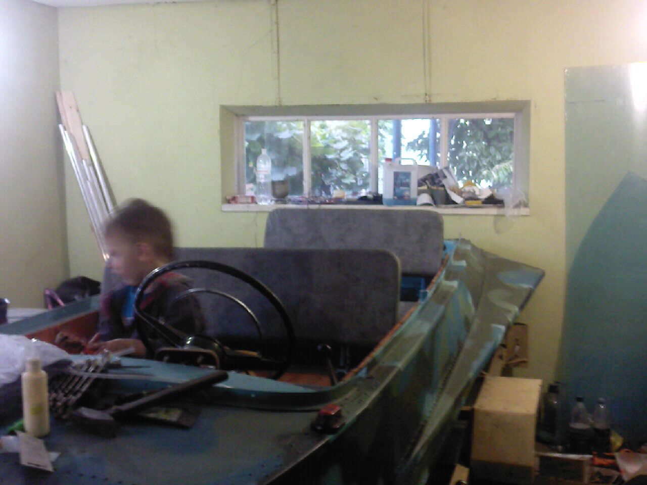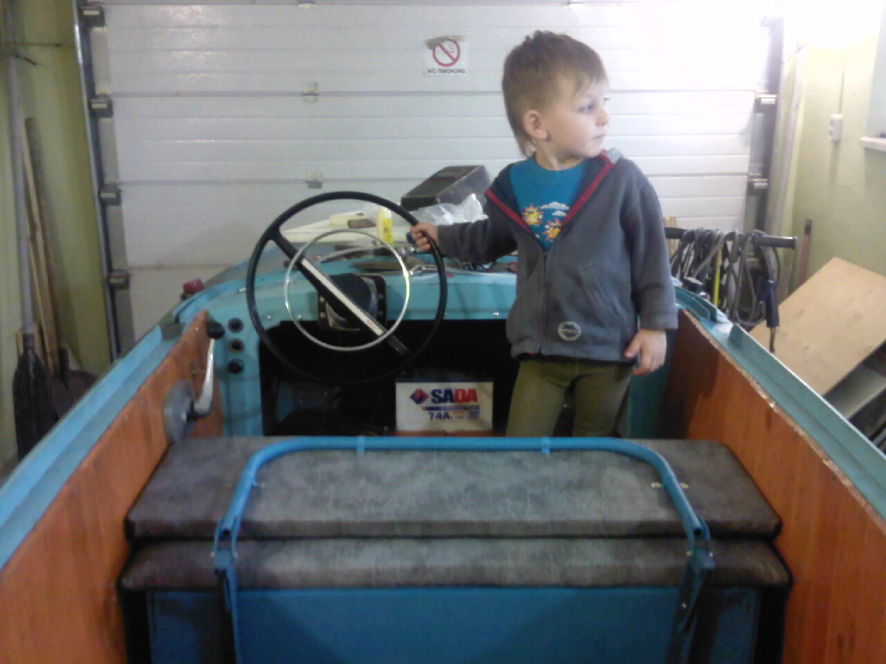 За это время еще многое добавил (ревун,фару,борт огни,музыку,свет салона,прикуриватели,помпу и т.д.), но фоток нет