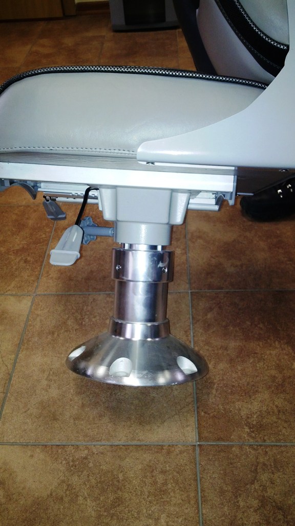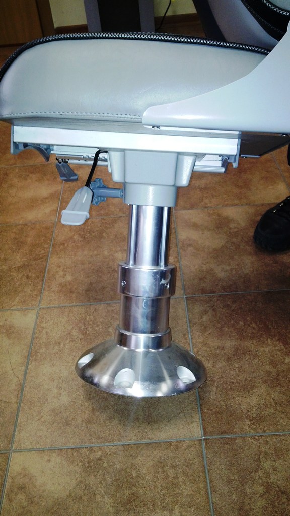 Ракурсы не самые удачные, но тем не менее видно,что эстетика не пострадала. Стойка имеет как ход вверх вниз с пневмо системой, так и вперёд назад сидение двигается.