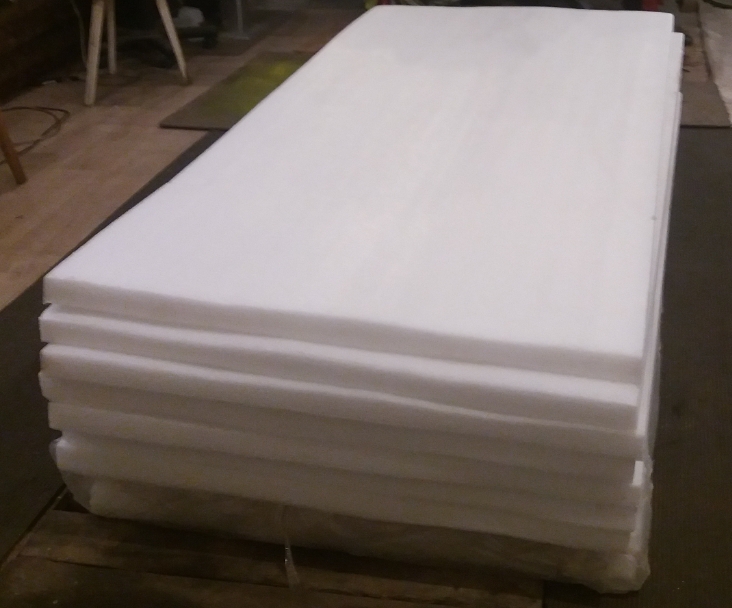 Попробую коротко. Доволен простотой порезки и монтажа. Эластичный материал, как по мне ,это его главное достоинство. И значит его можно неоднократно при необходимости вынимать и ставить на место. Не клеил между собой устанавливаемые куски( не было необходимости ). Использовал листы толщиной 2 см и 5 см. Размеры 100 см х 200 см.