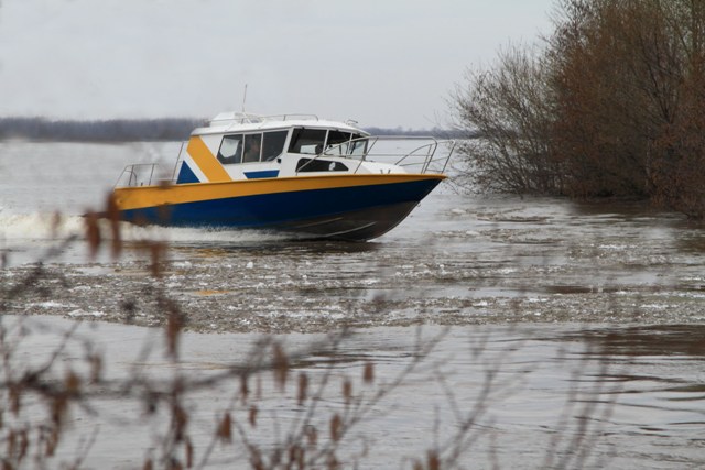 Еще идет по воде шуга, не полностью растаял лед вдоль берегов и на мелководье нашей матушки Волги, несет течением коряги и прочий природный мусор. Пейзаж не с глянцевой картинки туристического журнала, суровый нрав у полноводной от разлива реки. И среди этого водного «бездорожья» мы решили в очередной раз испытать возможности нашего верного помощника: сверхпрочного, скоростного алюминиевого катера КС-701.