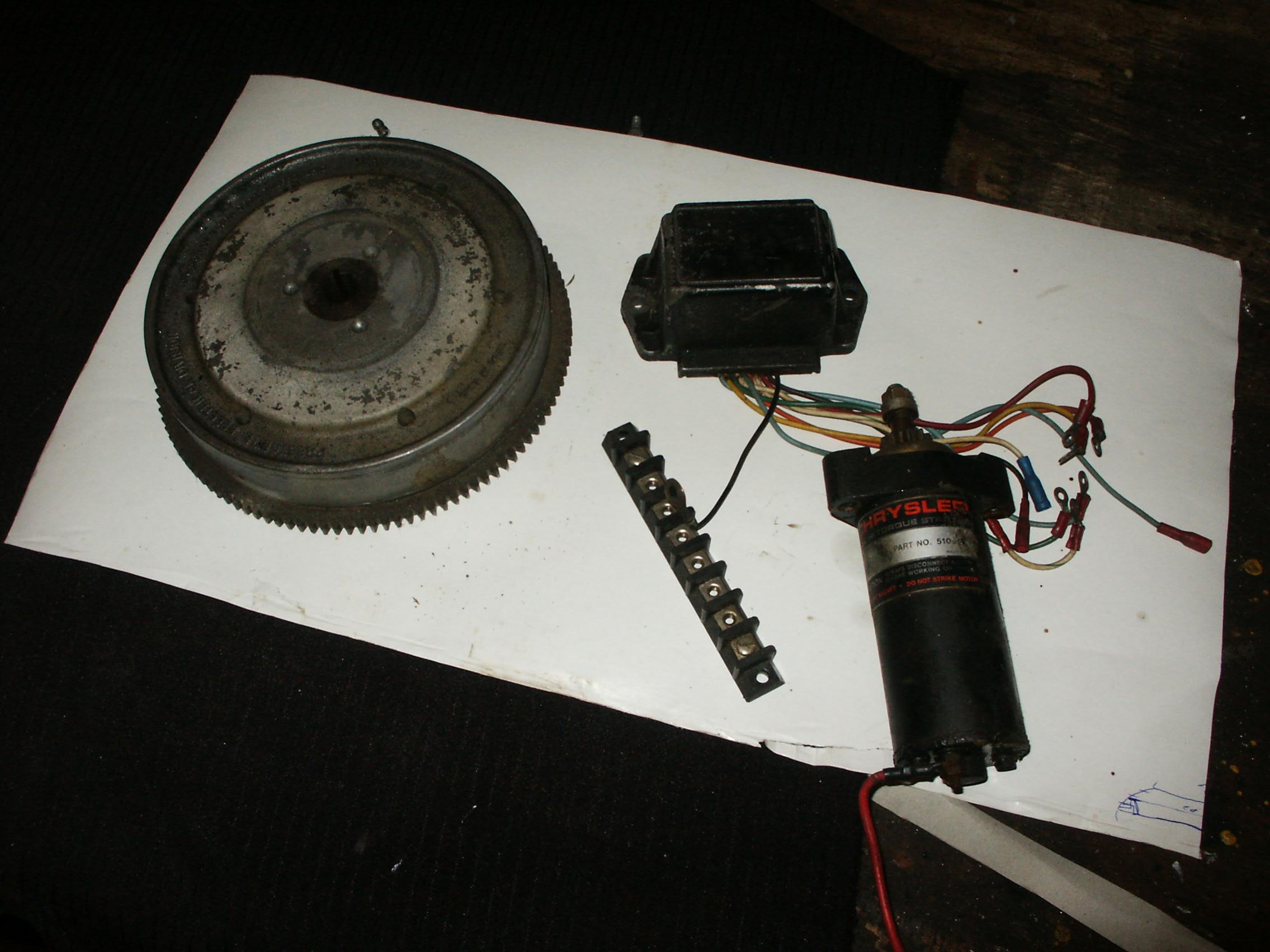 На других фото маховик и стартер от 12.5 л.с КРАЙСЛЕРА, можно выточить вал и чё то соорудить, я так думаю, может соберусь и попробую, а может обратно мотор собрать