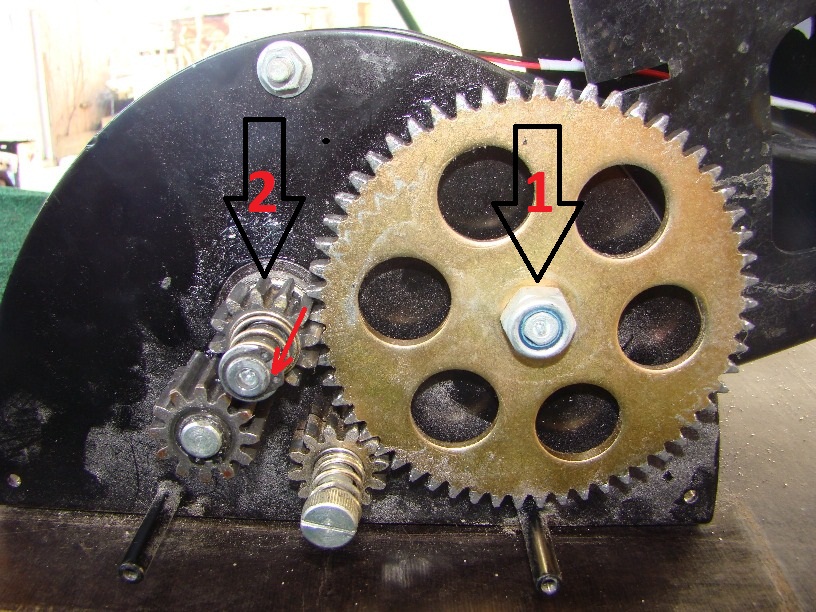 Не понятно каким образом шестерня 2 перемещается? Предполагаю что по резьбе на ее валу, а шестерня которая ниже (в зацеплении с шестерней 1) притормаживает вал? Если так то более-менее понятно как шестерня 2 выходит из зацепления, а вот что ее заставляет обратно войти в зацепление (при подъеме)?