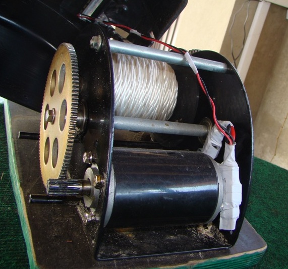 Когда нажимаем кнопку спуск двигатель вращается в обратном направлении и шестерня 2 перемешается по стрелке выходя из зацепления с шестерней 1 и под весом якоря начинает сматываться веревка и якорь в свободном падении идет на дно (кнопку можно отпустить и ждать пока якорь ляжет на дно) категарически ЗАПРЕЩЕНО!!! пытаться остановить якорь нажав на подъем, несколько таких попыток и будете менять шестерни. Когда якорь ляжет на дно нажимаем кнопку подъем, шестерня 2 заходит в зацепление с шестерней 1, можно немного подтянуть веревку и успешно стоять на якоре. Для подъема просто нажимаем подъем. Ну примерно так Ежели чего непонятно спрашивайте.