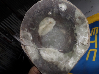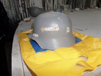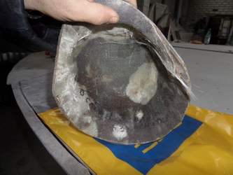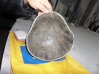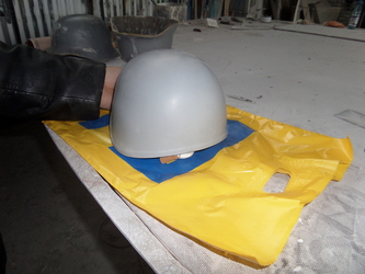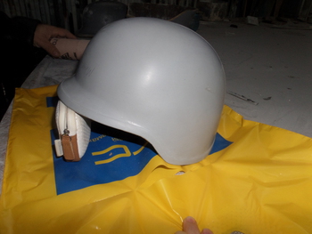 Товарищ профессионально занимается изготовлением стеклопластиковых изделий. Не оставаясь в стороне от происходящих событий ,делает шаги по изготовлению касок. Были изготовлены матрицы, снятые с немецкой и итальянской касок. Образец с немецкой каски-так, для разнообразия формы для отстрела. Для отработки технологии изготовления были изготовленны несколько образцов с применением разного количества слоев кевлара.Лучшие показатели -14 слоев различных тканей, из которых 6-кевлар.Каски отстреливались с расстояния 8м из пм и стечкина. Пули слоят , но не пробивают композит , не одного прямого прохода не по прямой не по касательной.